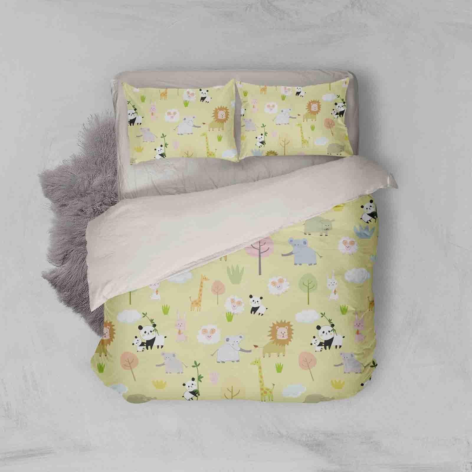 3D Cartoon Animal Yellow Quilt Cover Set Bedding Set Pillowcases 98