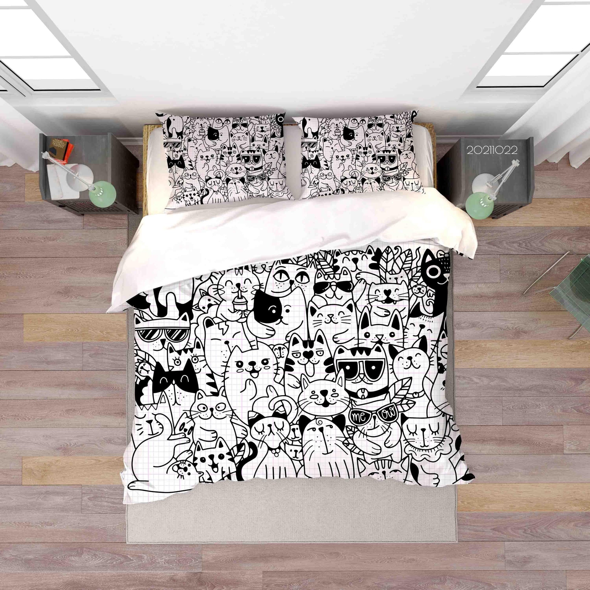 3D Cartoon Animals Cats Graffiti Quilt Cover Set Bedding Set Duvet Cover Pillowcases 41