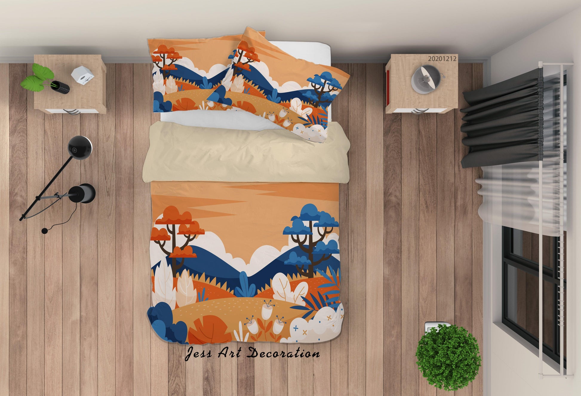3D Cartoon Autumn Mountain Tree Plant Background Quilt Cover Set Bedding Set Duvet Cover Pillowcases LXL