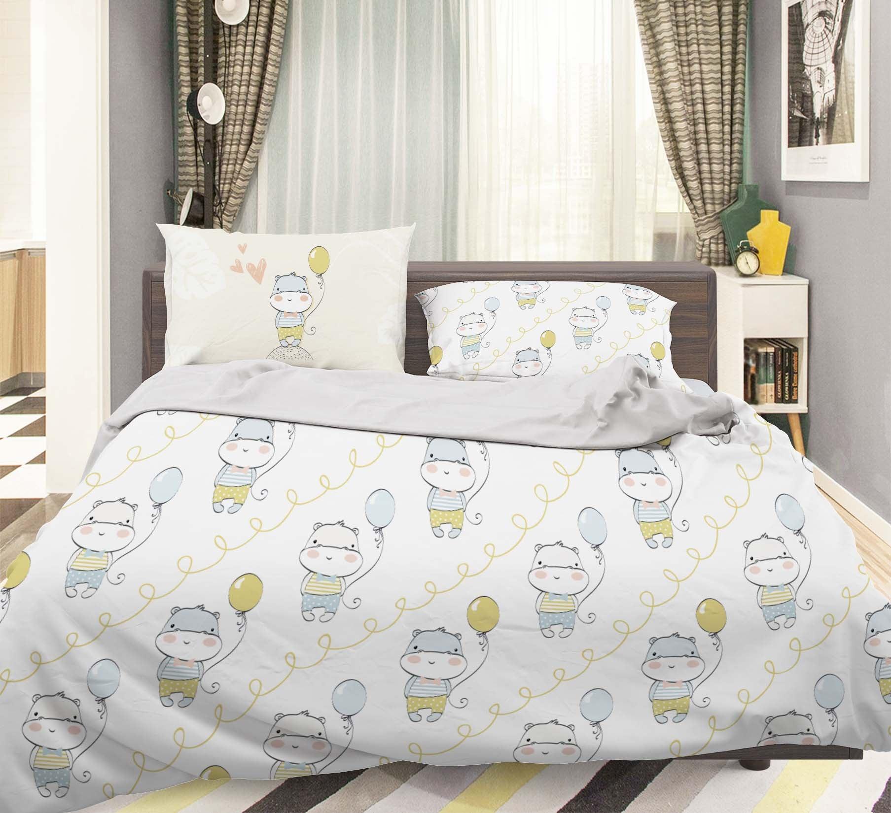 3D Cartoon Balloon Hippo Animal Quilt Cover Set Bedding Set Duvet Cover Pillowcases LXL