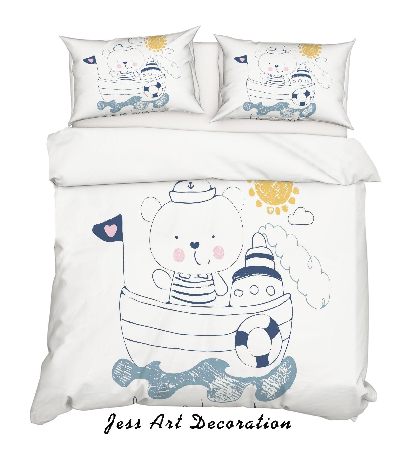 3D Cartoon Bear Boat Quilt Cover Set Bedding Set Pillowcases 162