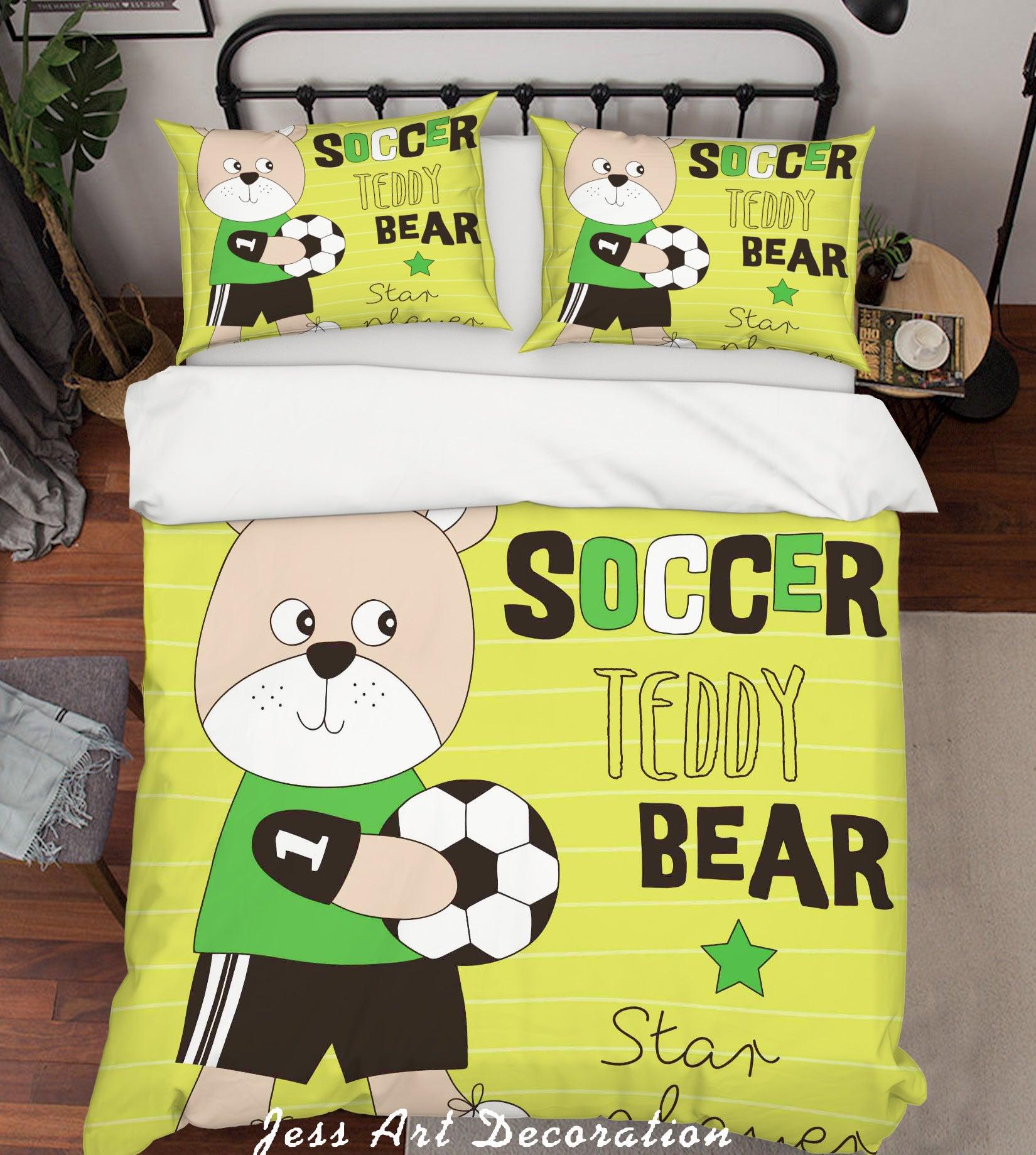 3D Cartoon Bear Football Quilt Cover Set Bedding Set Pillowcases 167
