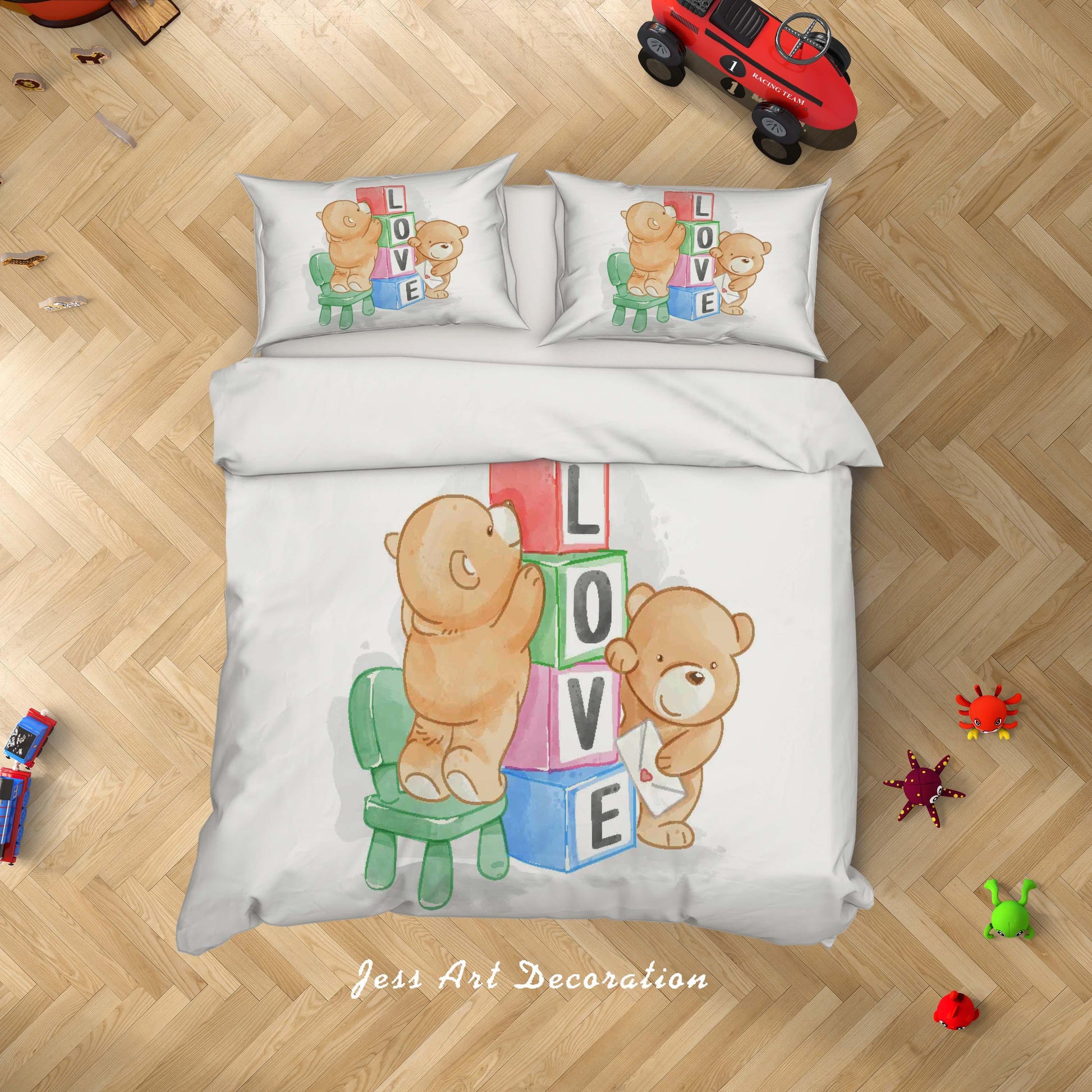 3D Cartoon Bear Love Quilt Cover Set Bedding Set Duvet Cover Pillowcases SF48