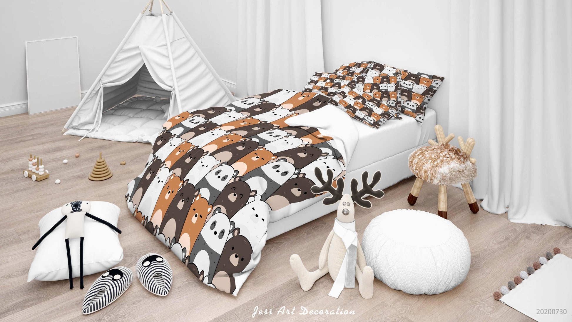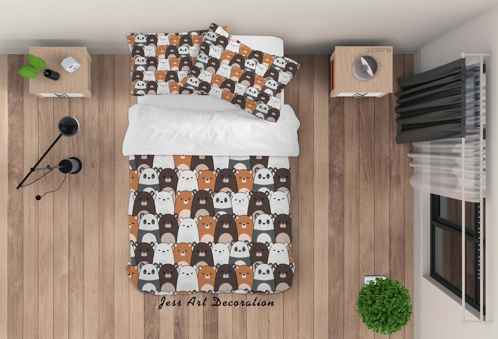 3D Cartoon Bear Panda Quilt Cover Set Bedding Set Duvet Cover Pillowcases LXL 45