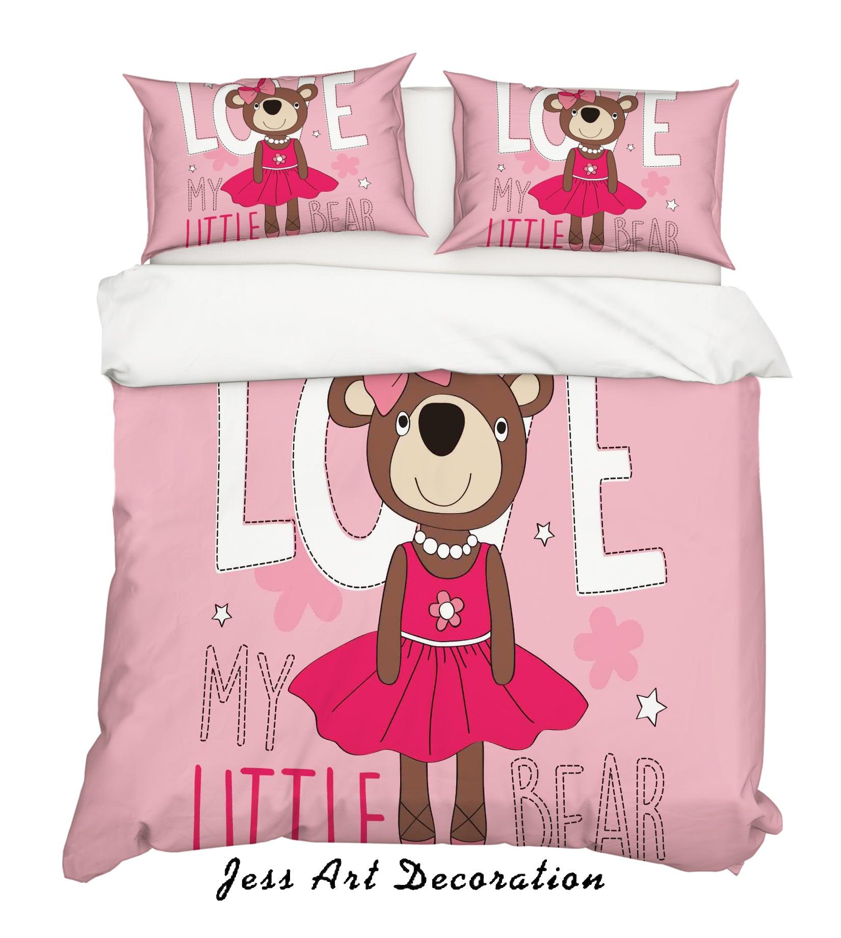3D Cartoon Bear Pink Quilt Cover Set Bedding Set Pillowcases 181