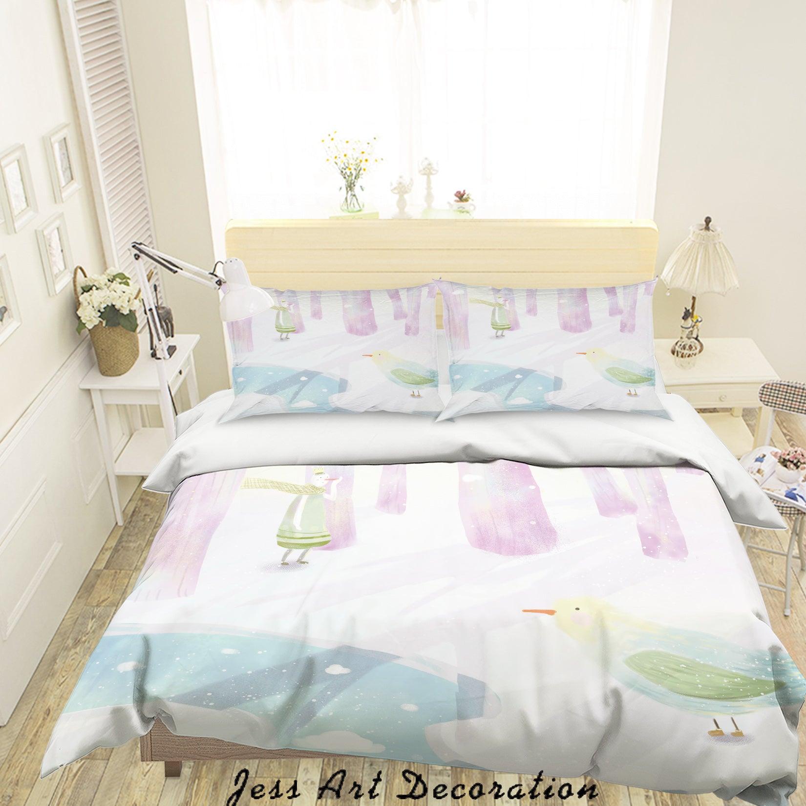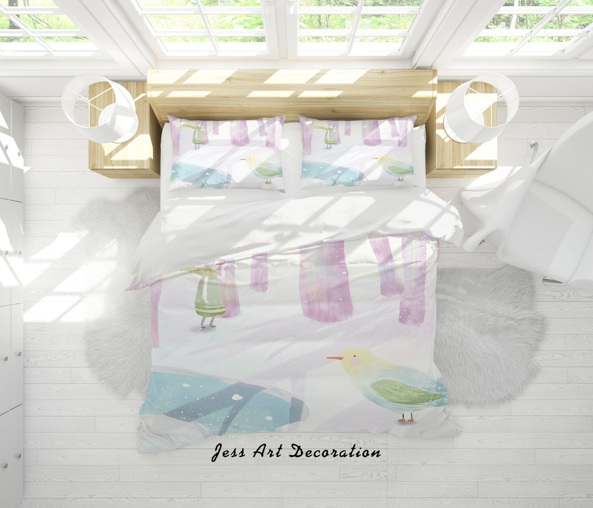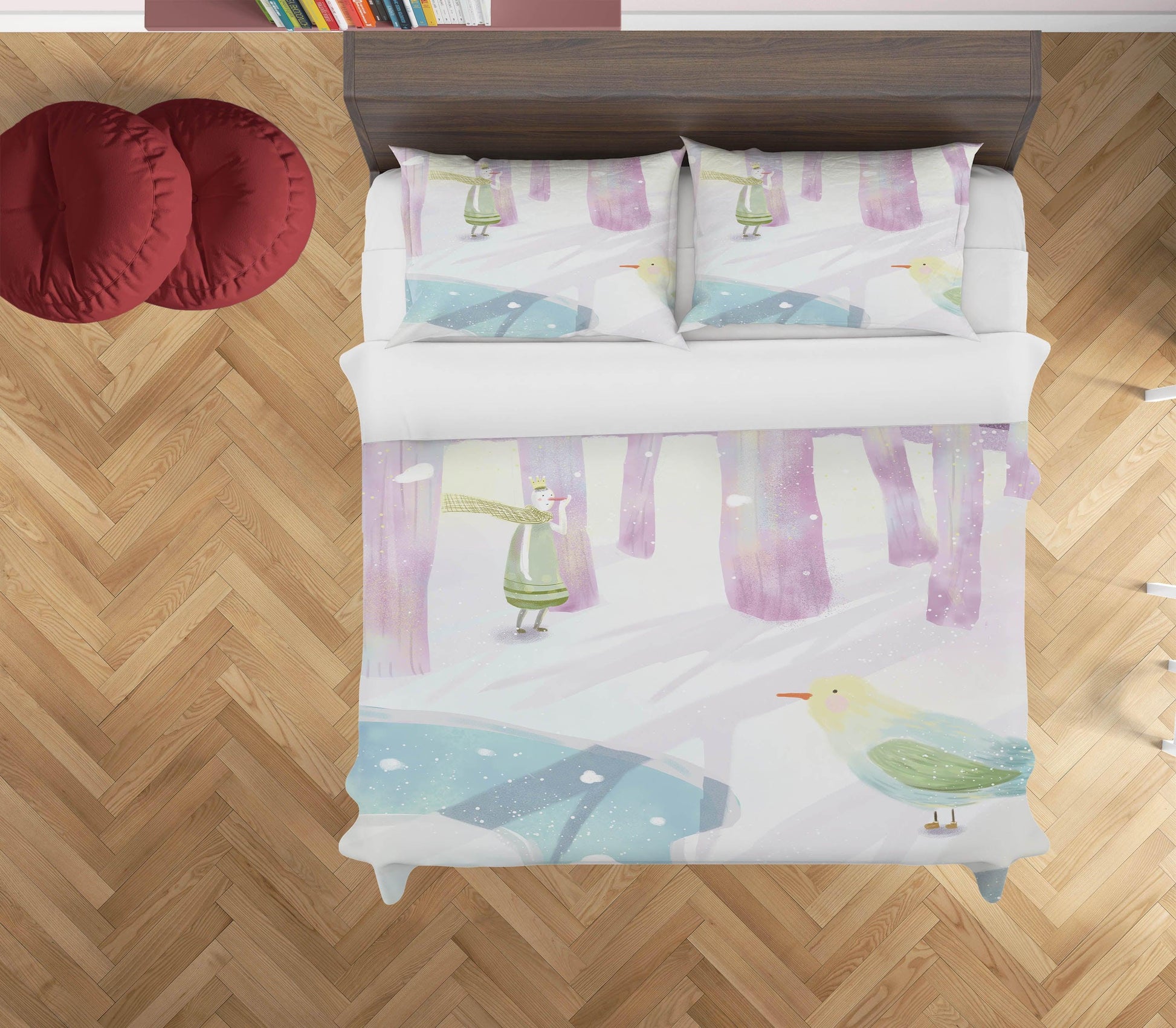 3D Cartoon Bird Snow Forest Girl Quilt Cover Set Bedding Set Duvet Cover Pillowcases A572 LQH
