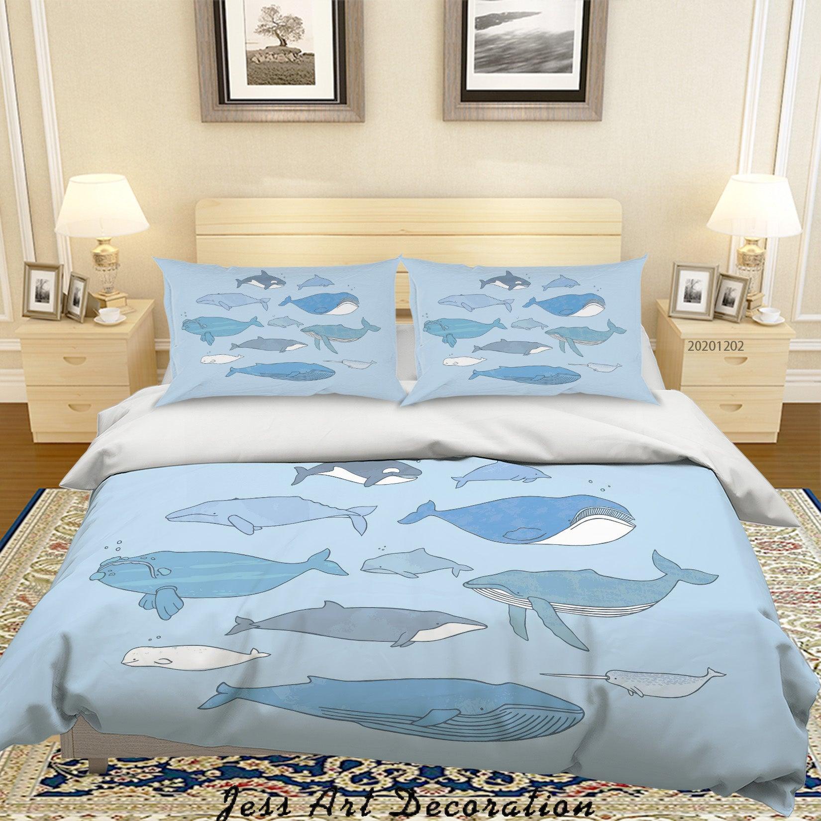 3D Cartoon Blue Ocean Shark Whale Fish Pattern Quilt Cover Set Bedding Set Duvet Cover Pillowcases LXL