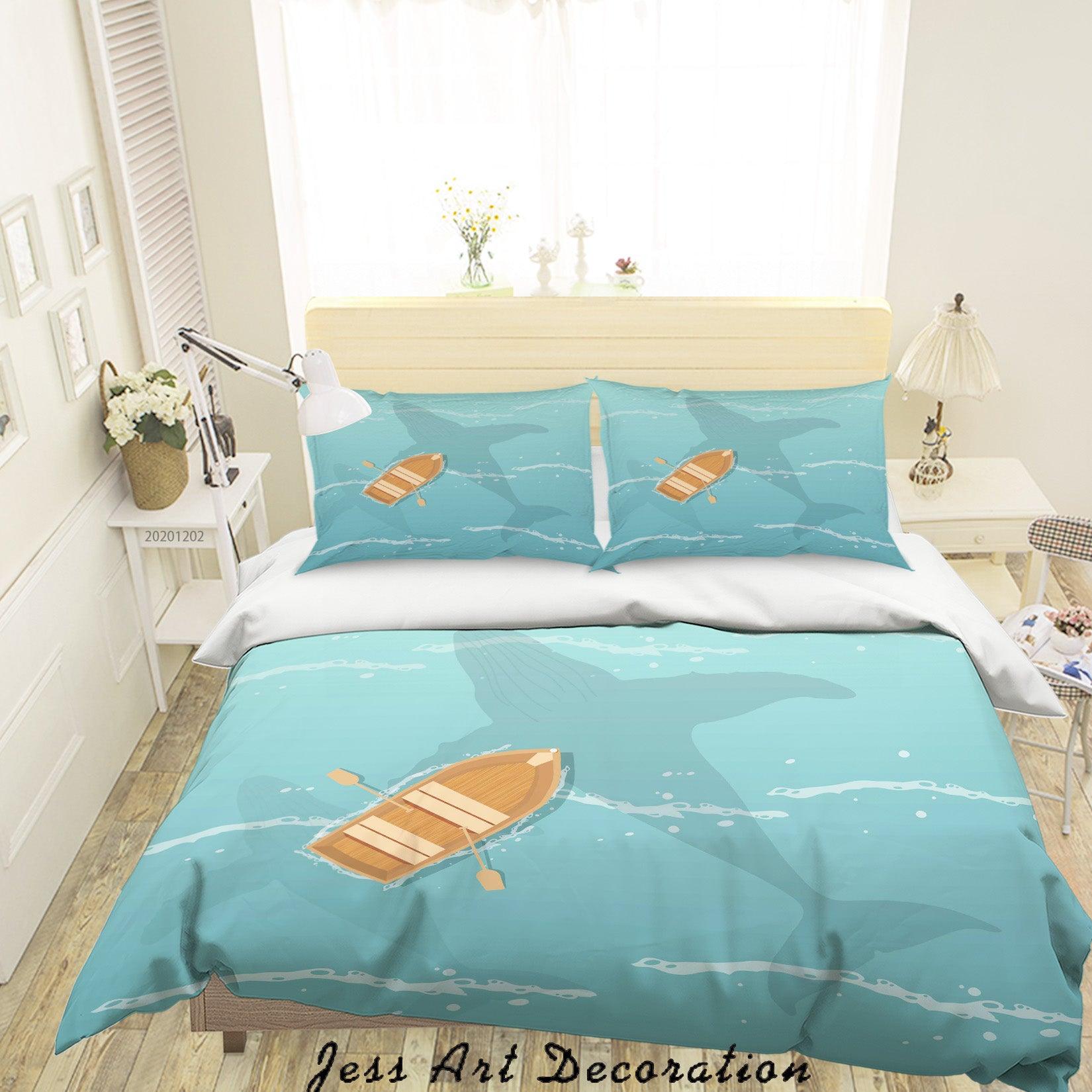 3D Cartoon Blue Ocean Whale Shadow Boat Quilt Cover Set Bedding Set Duvet Cover Pillowcases LXL