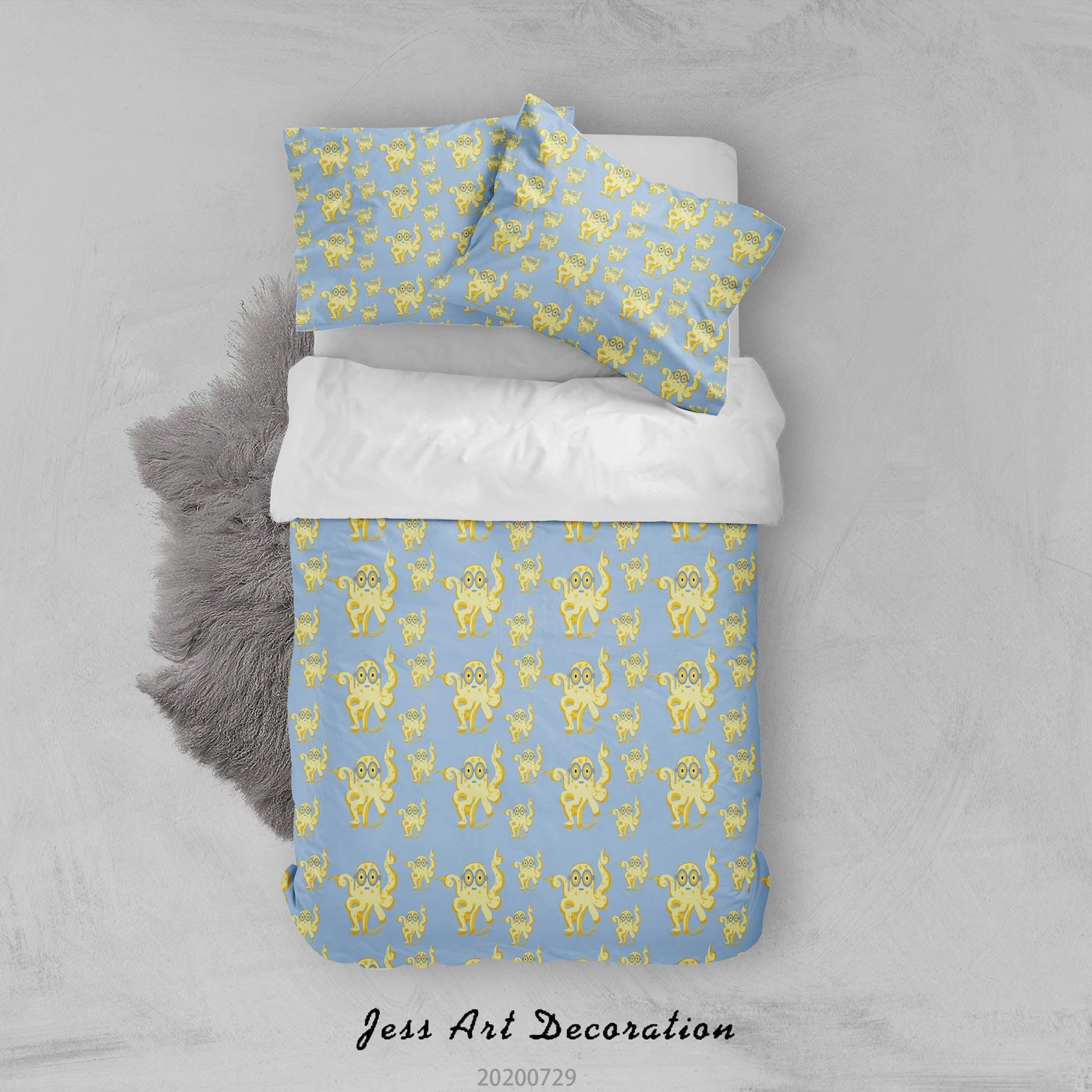 3D Cartoon Blue Octopus Quilt Cover Set Bedding Set Duvet Cover Pillowcases LXL 174