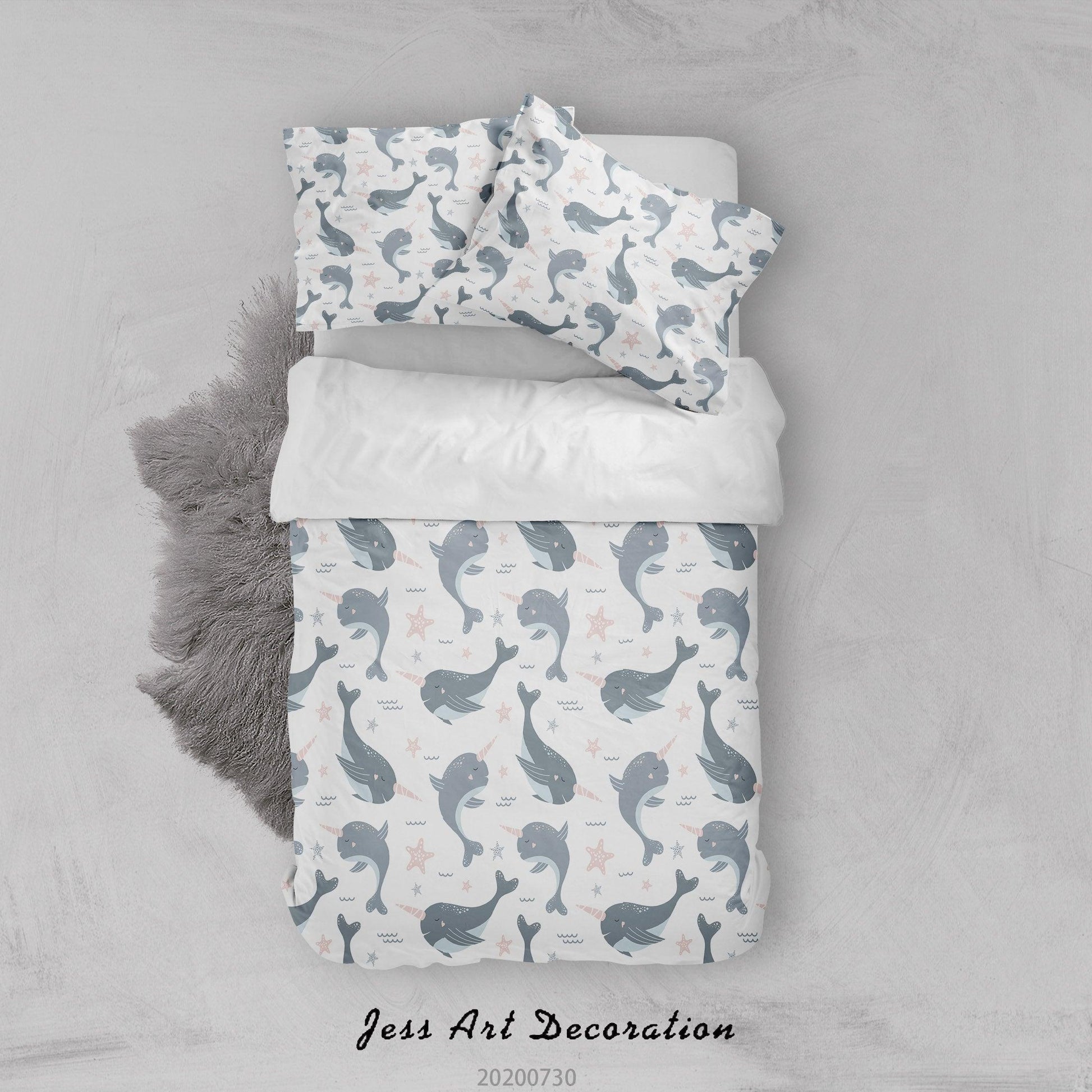 3D Cartoon Blue Whale Quilt Cover Set Bedding Set Duvet Cover Pillowcases LXL 28
