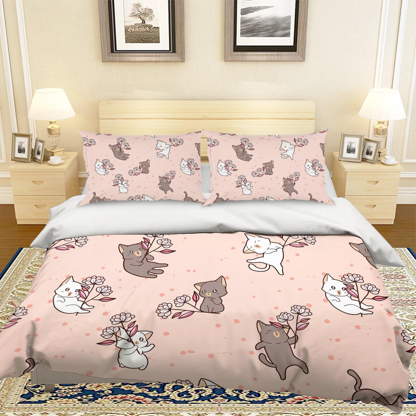 3D Cartoon Cat Pink Quilt Cover Set Bedding Set Pillowcases 66