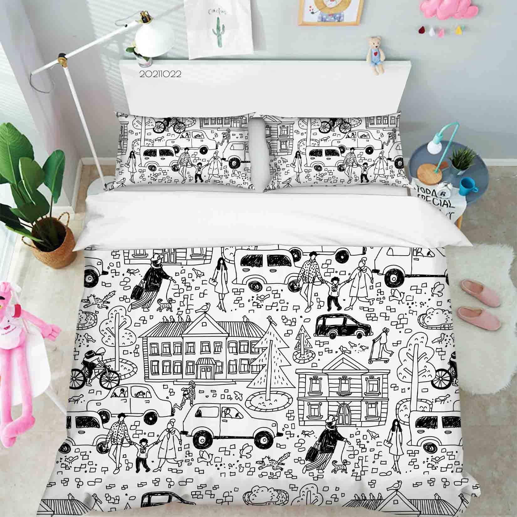3D Cartoon City Life Illustrations Quilt Cover Set Bedding Set Duvet Cover Pillowcases 44