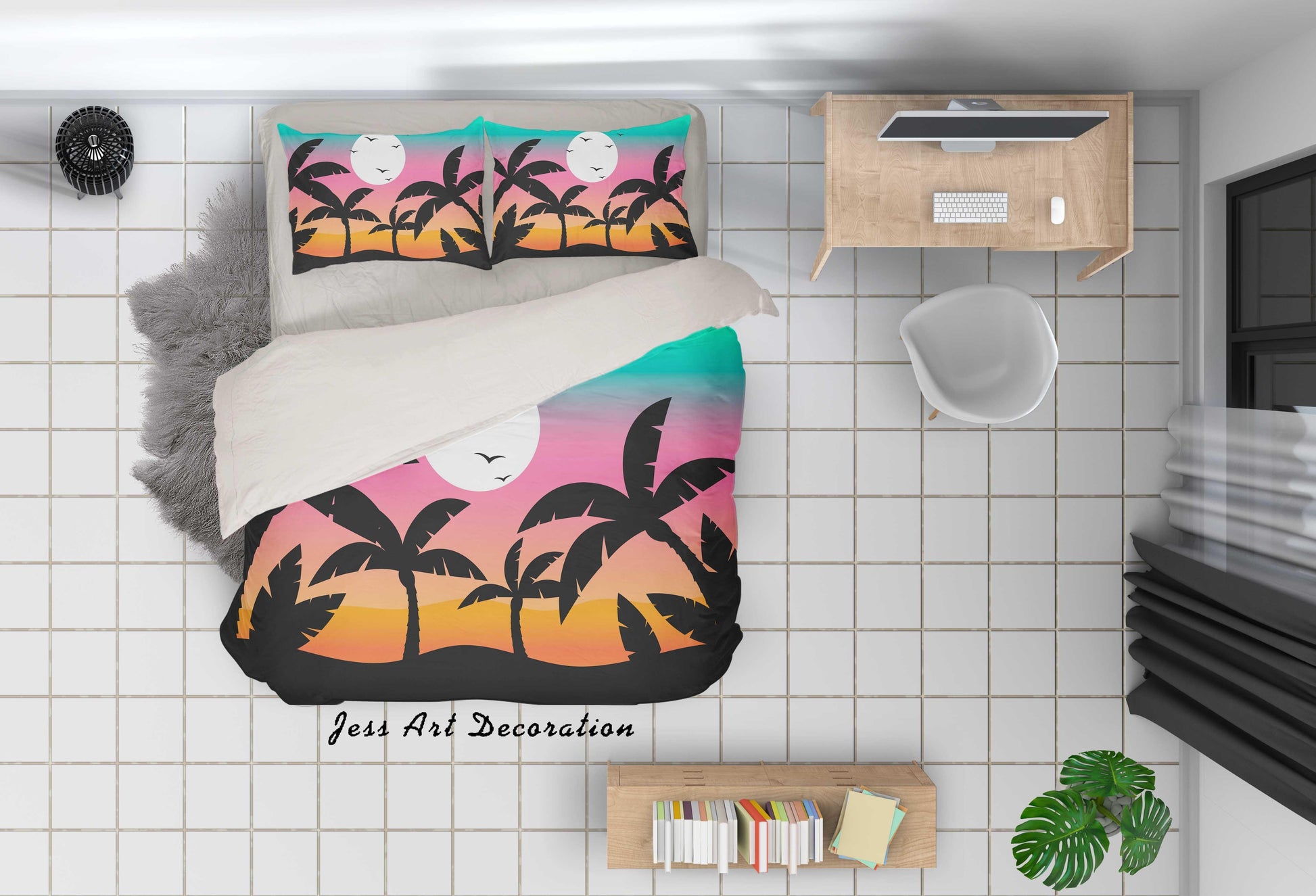 3D Cartoon Coconut Tree Sunset Quilt Cover Set Bedding Set Duvet Cover Pillowcases A055 LQH