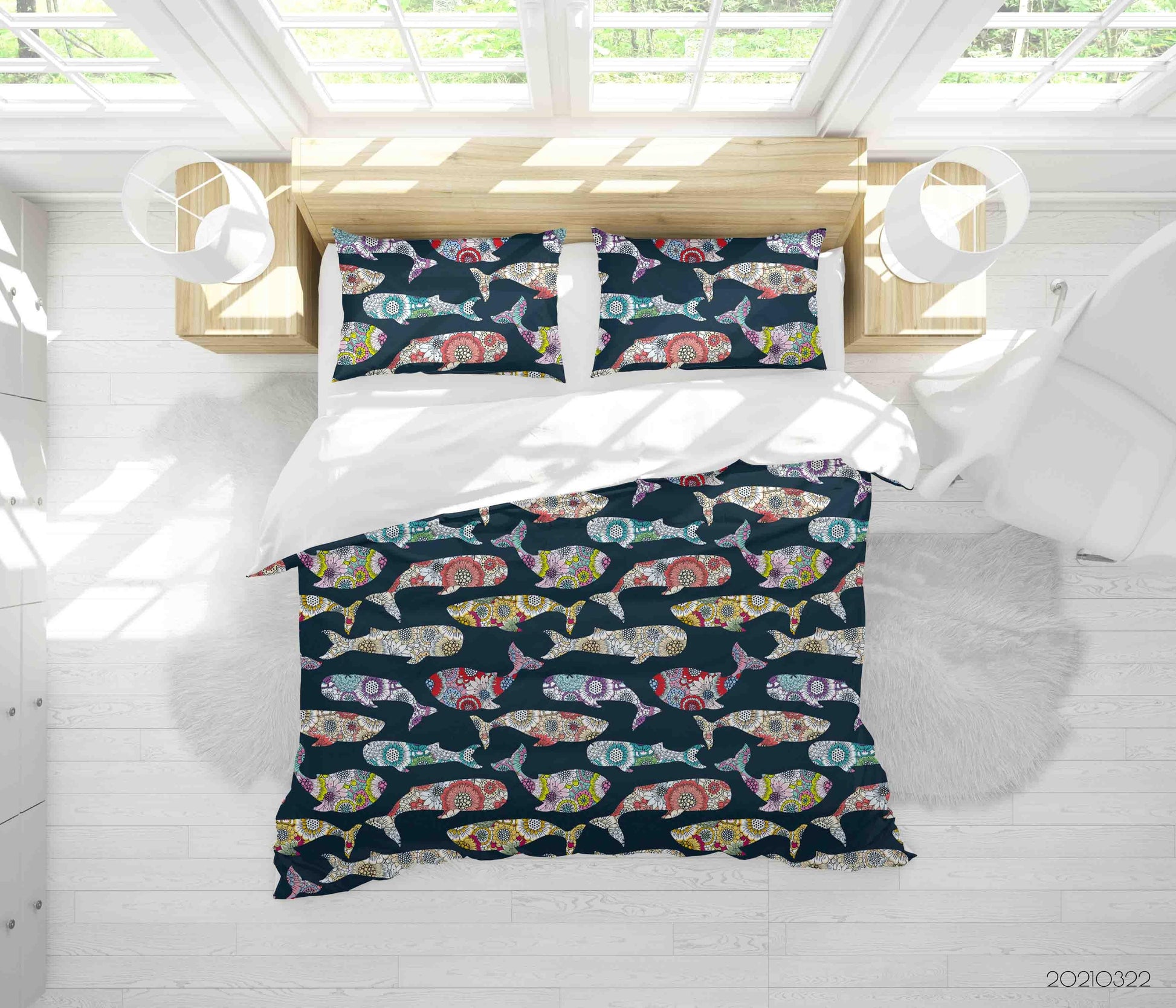 3D Cartoon Colored Fish Sealife Quilt Cover Set Bedding Set Duvet Cover Pillowcases 40 LQH