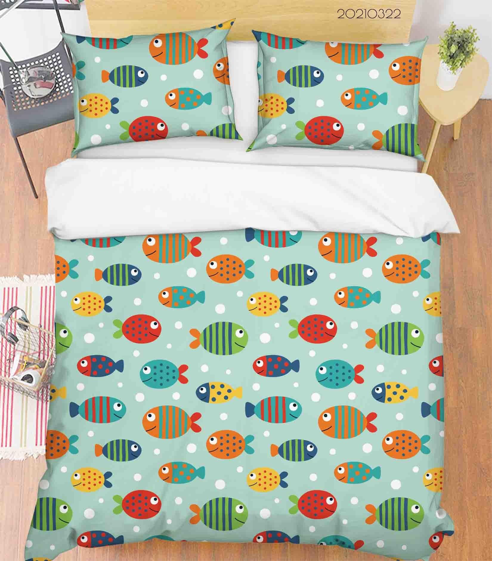 3D Cartoon Colored Fish Sealife Quilt Cover Set Bedding Set Duvet Cover Pillowcases 41 LQH