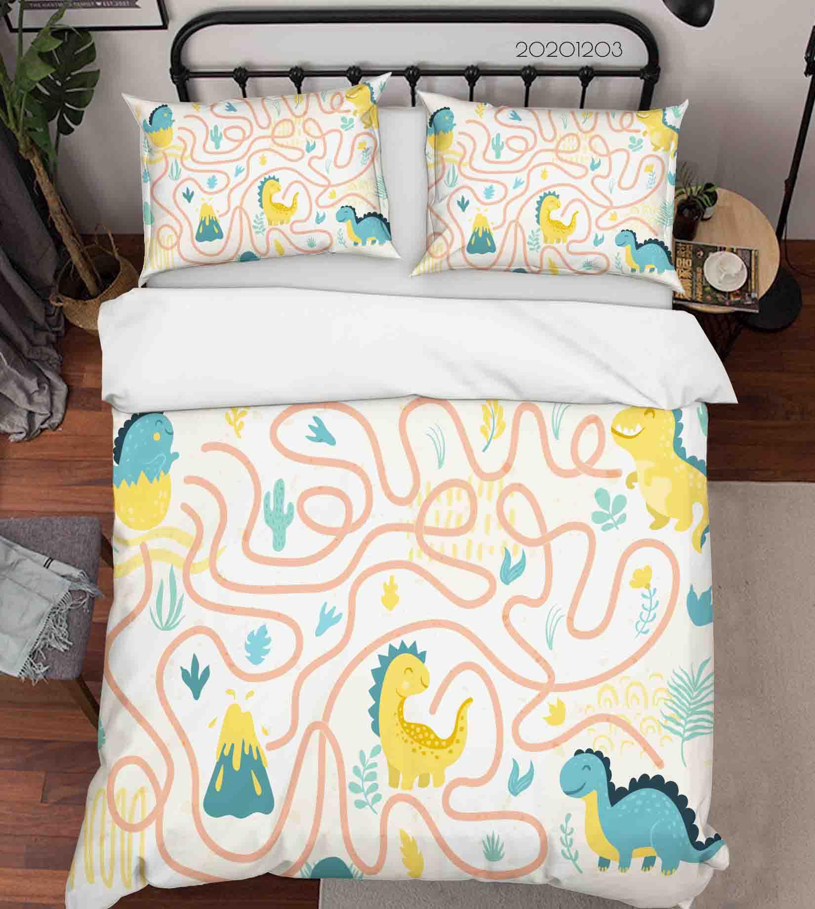 3D Cartoon Colorful Cactus Volcanic Dinosaur Animal Quilt Cover Set Bedding Set Duvet Cover Pillowcases LXL