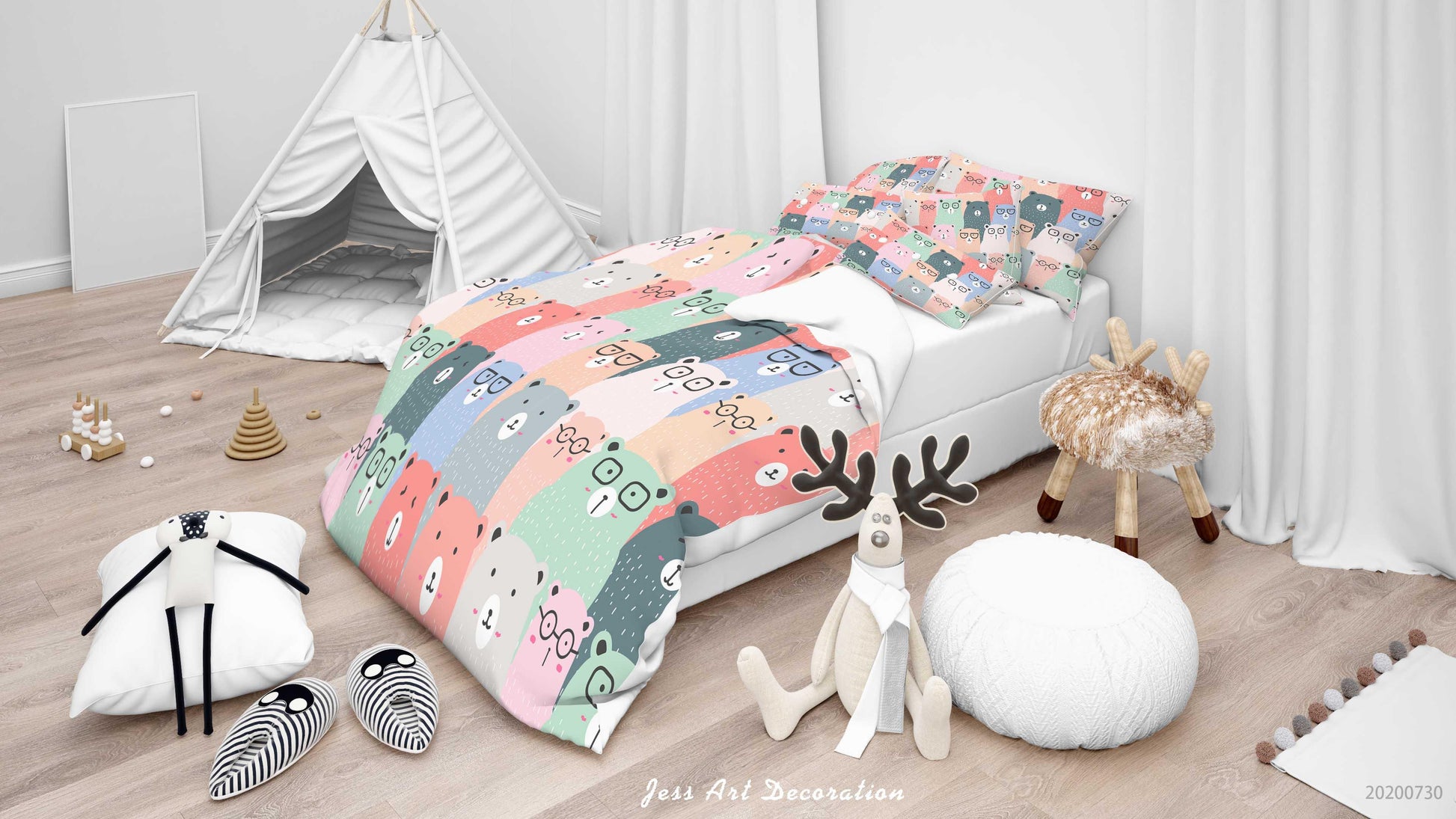 3D Cartoon Colorful Glassess Bear Quilt Cover Set Bedding Set Duvet Cover Pillowcases LXL 61