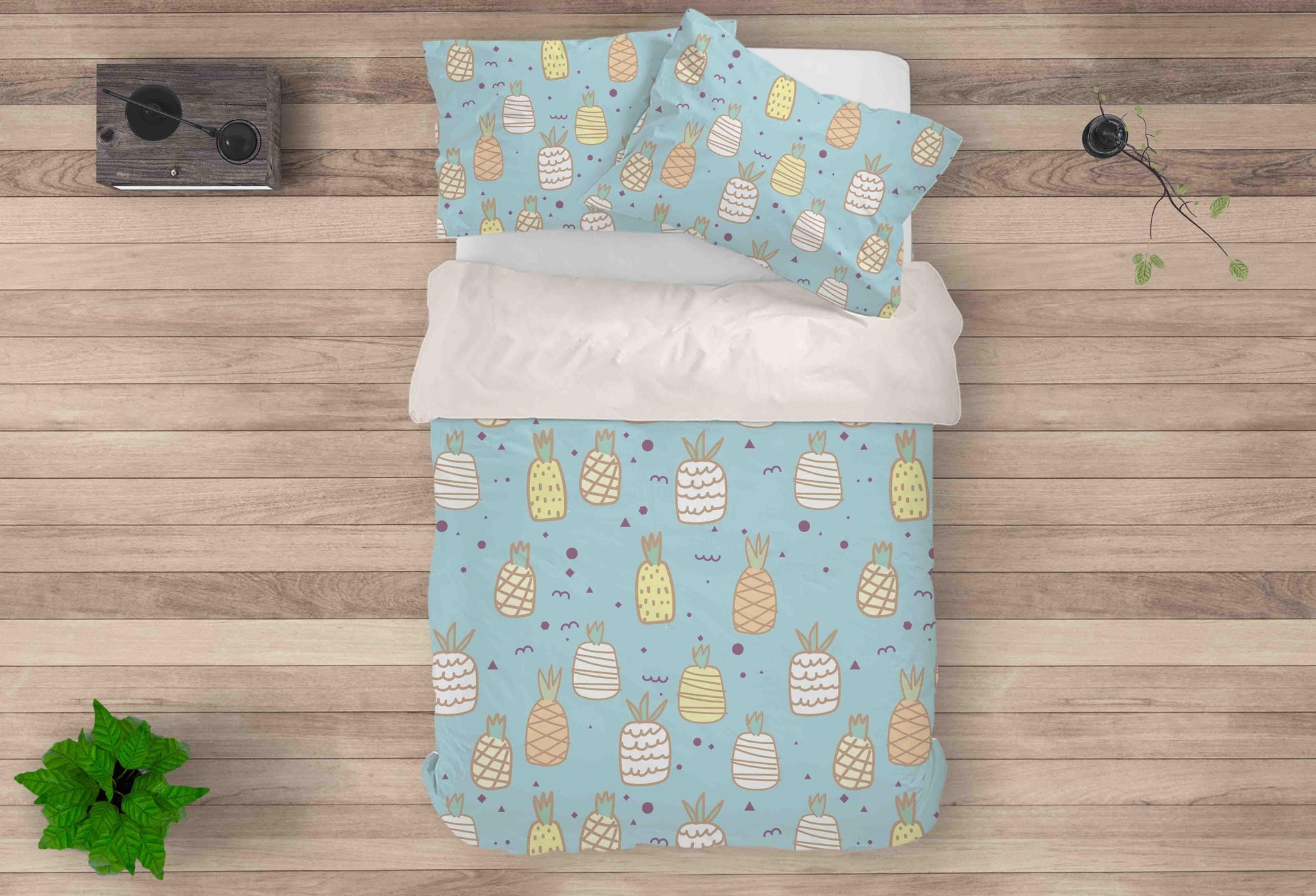 3D Cartoon Colorful Pineapple Pattern Blue Quilt Cover Set Bedding Set Duvet Cover Pillowcases LXL