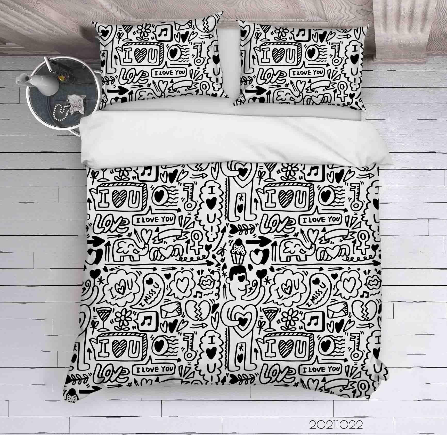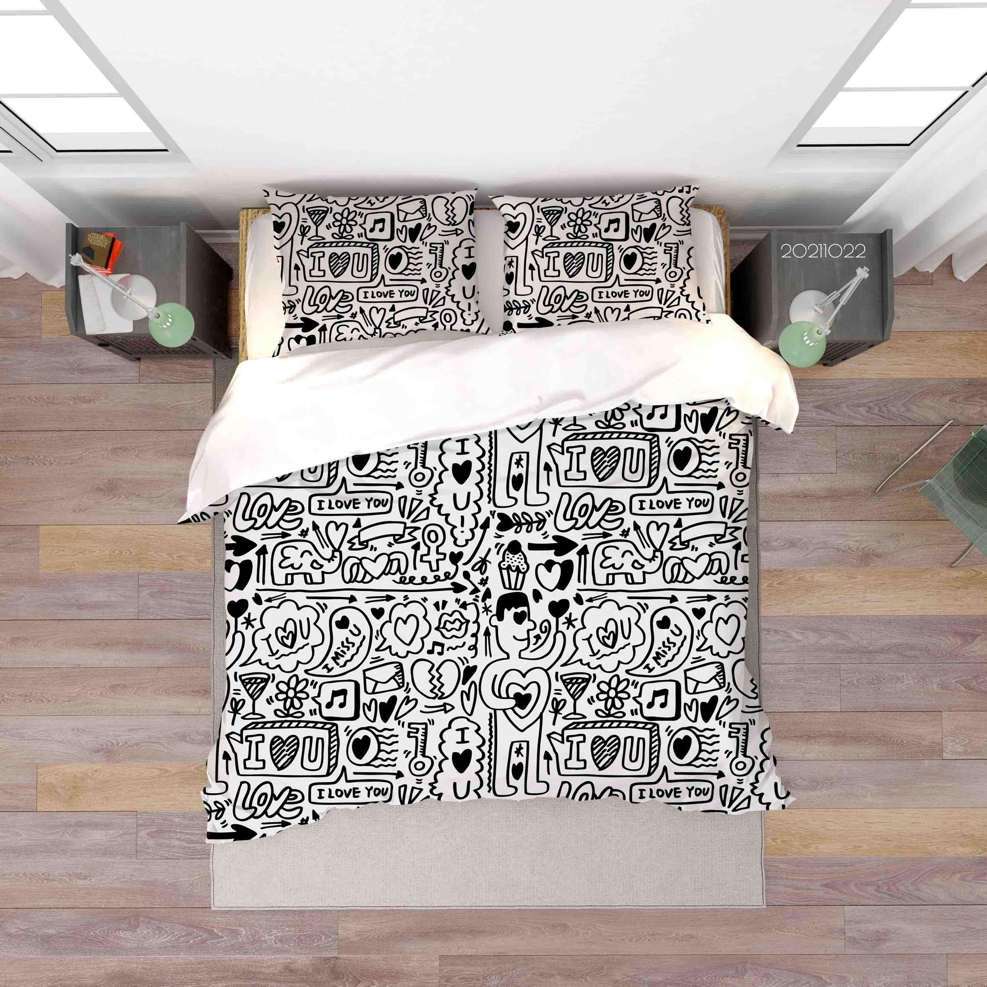 3D Cartoon Comic Illustration Doodle Quilt Cover Set Bedding Set Duvet Cover Pillowcases 63