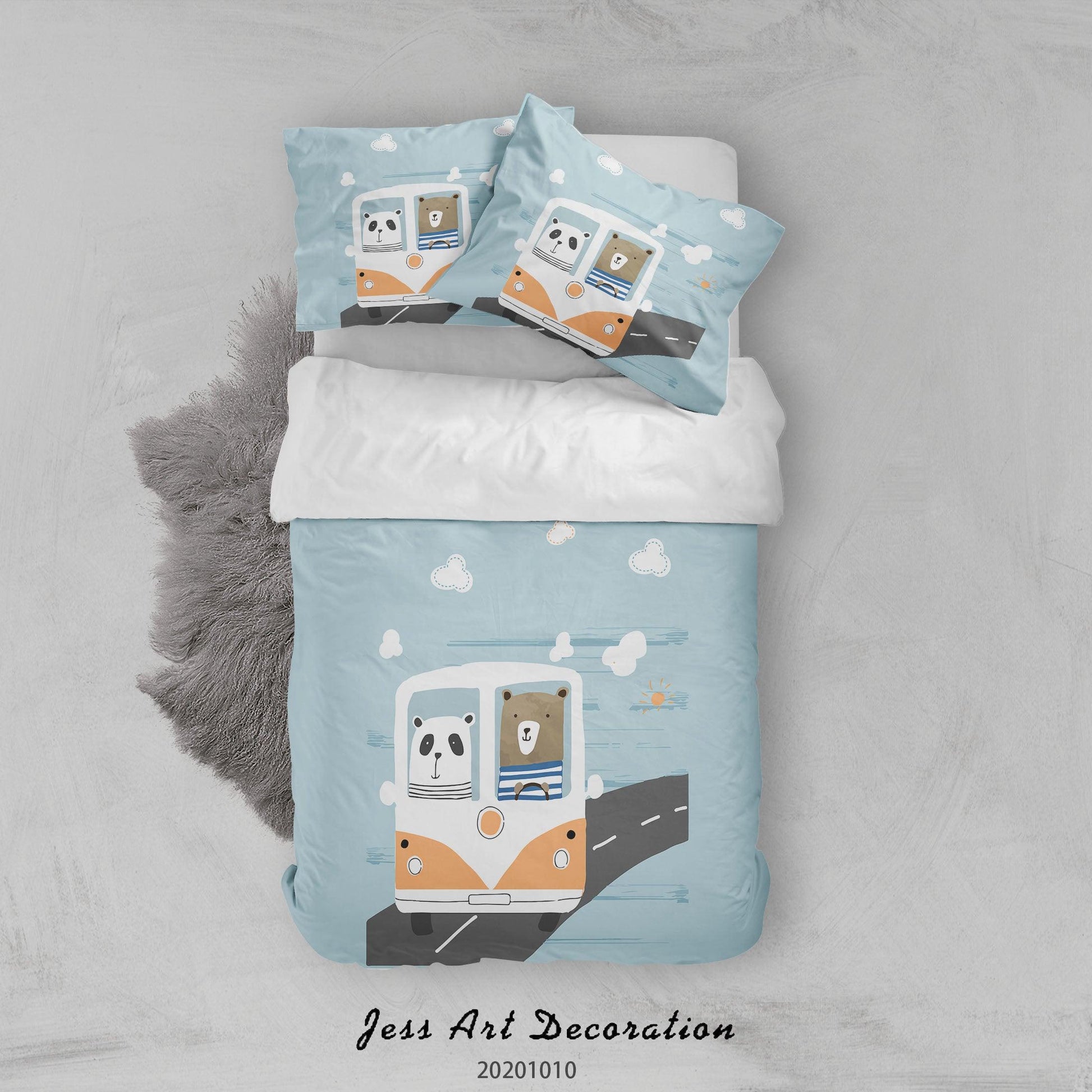3D Cartoon Cute Animal Bear Bus Quilt Cover Set Bedding Set Duvet Cover Pillowcases WJ 9556