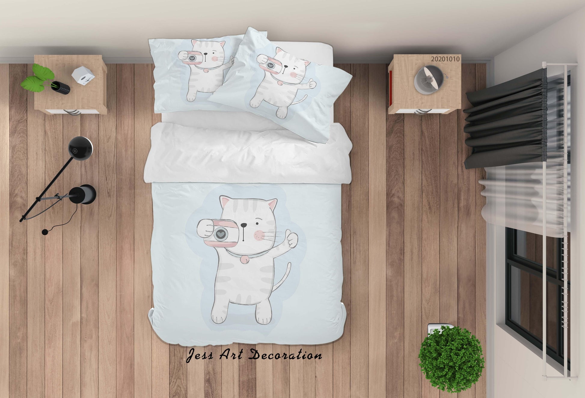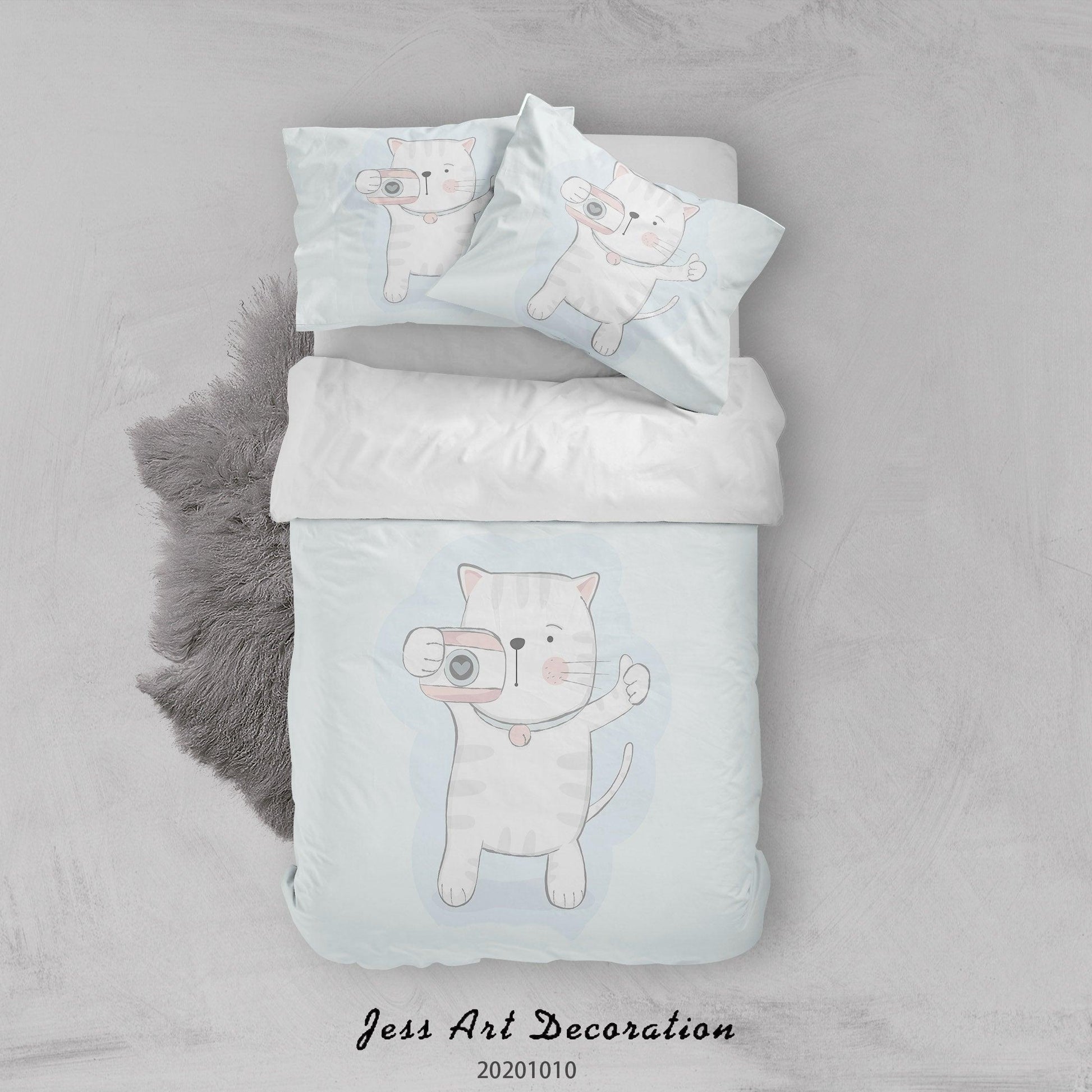 3D Cartoon Cute Animal Cat Camera Quilt Cover Set Bedding Set Duvet Cover Pillowcases WJ 9511