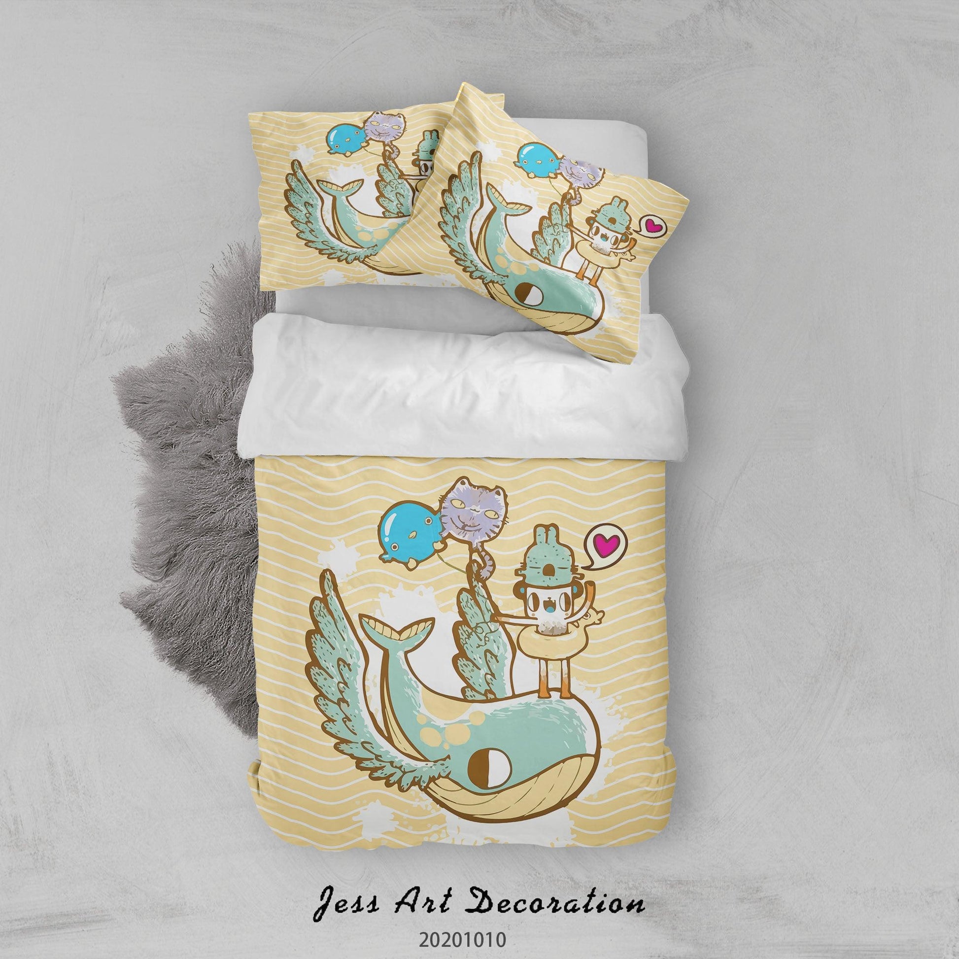 3D Cartoon Cute Animal Flying Whale Quilt Cover Set Bedding Set Duvet Cover Pillowcases WJ 9577