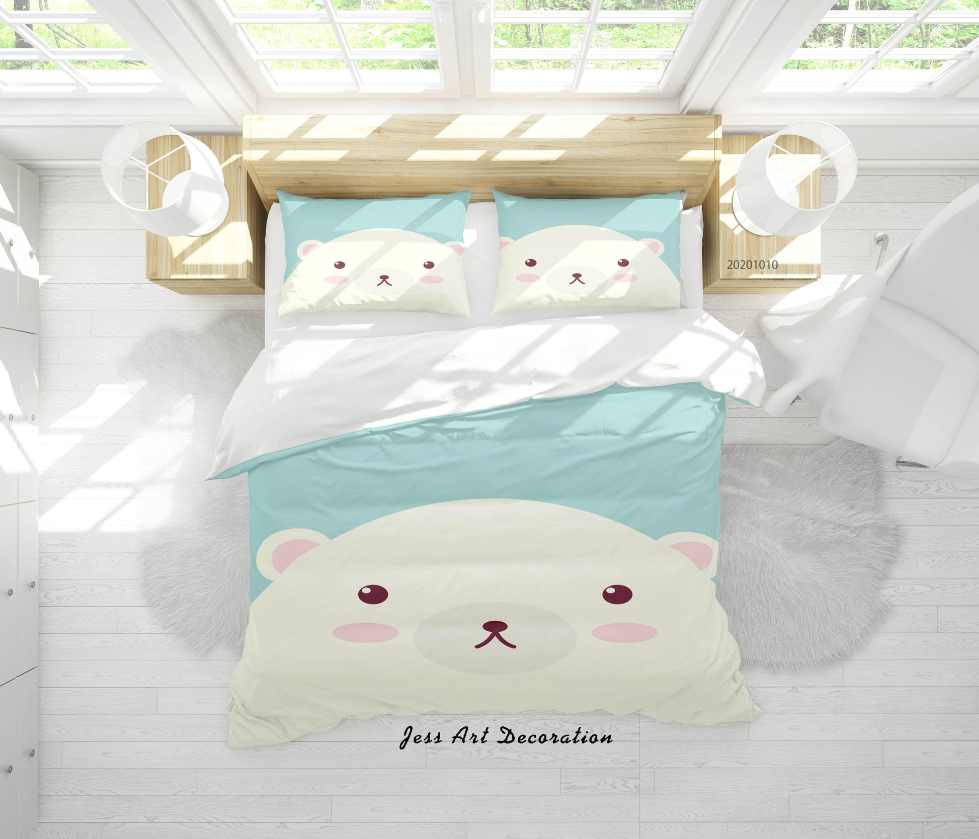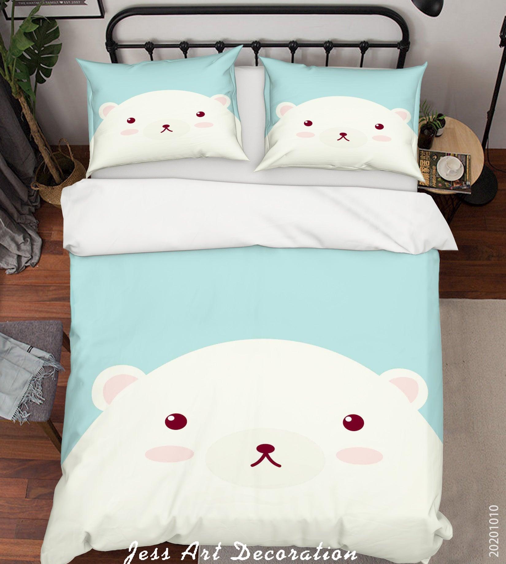 3D Cartoon Cute Animal Polar Bear Quilt Cover Set Bedding Set Duvet Cover Pillowcases WJ 9527