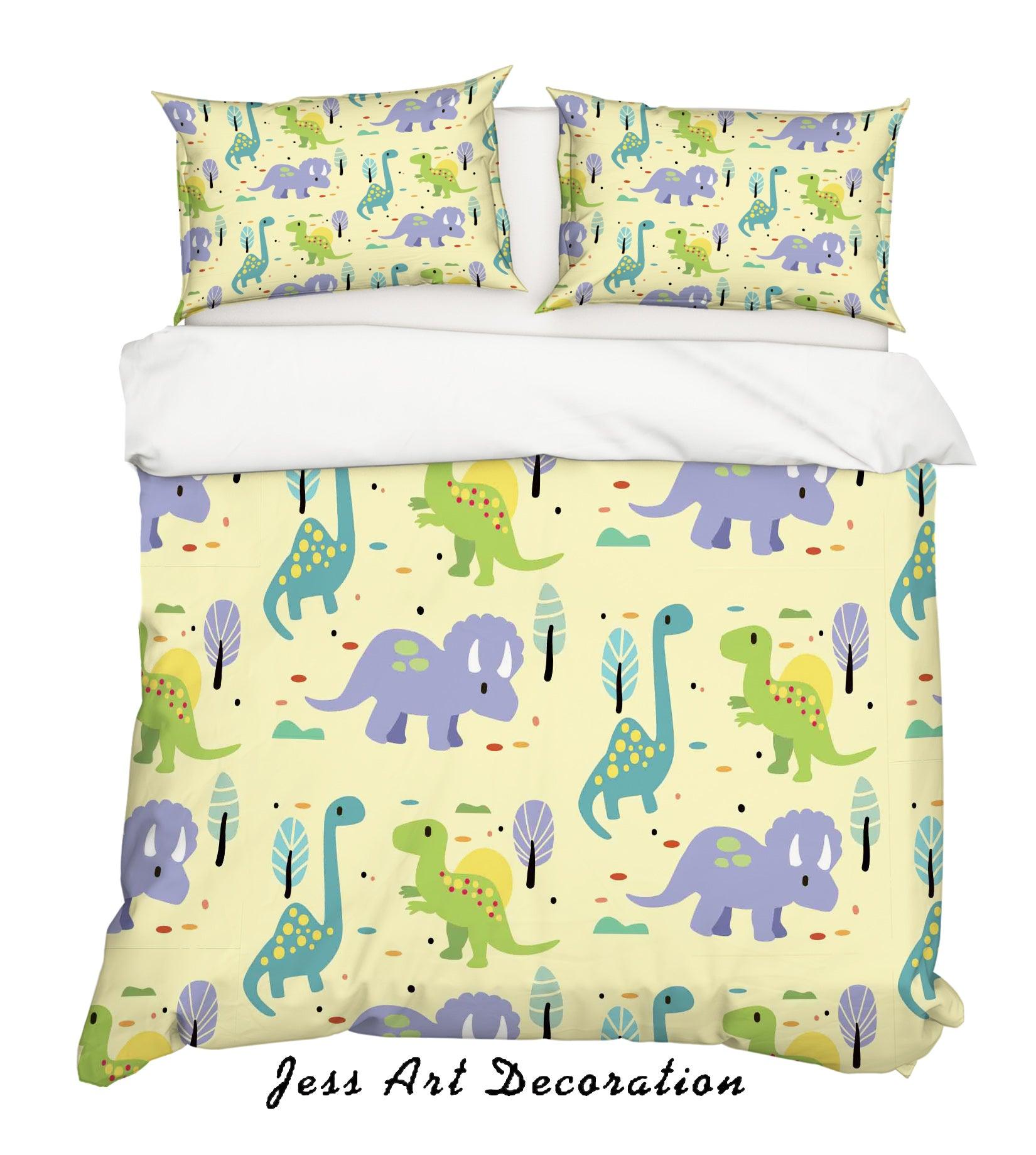 3D Cartoon Dinosaur Yellow Quilt Cover Set Bedding Set Pillowcases 83
