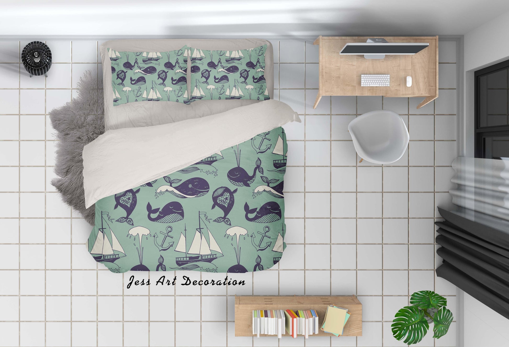 3D Cartoon Dolphin Sailboat Quilt Cover Set Bedding Set Pillowcases 21