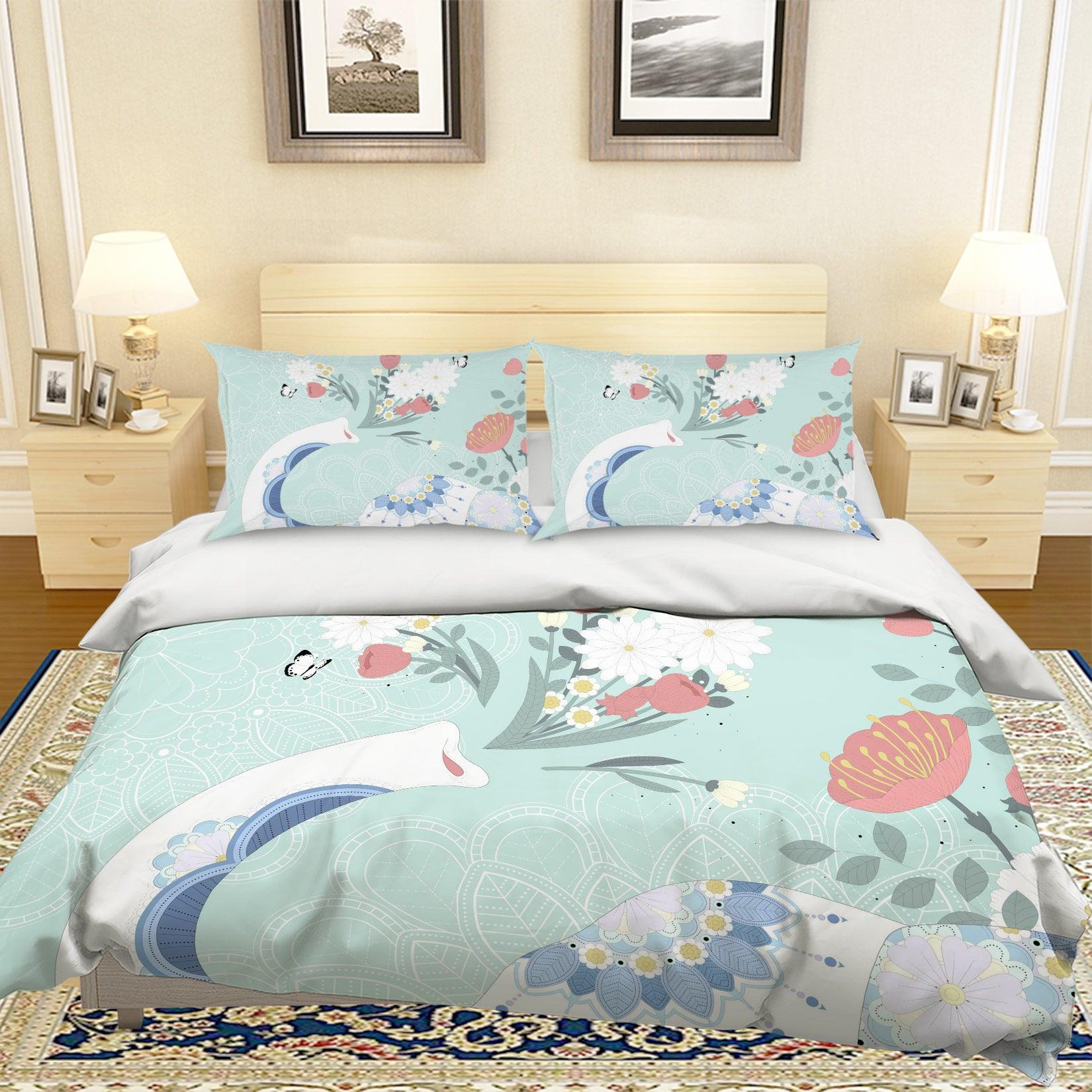 3D Cartoon Elephant Flower Quilt Cover Set Bedding Set Pillowcases 76
