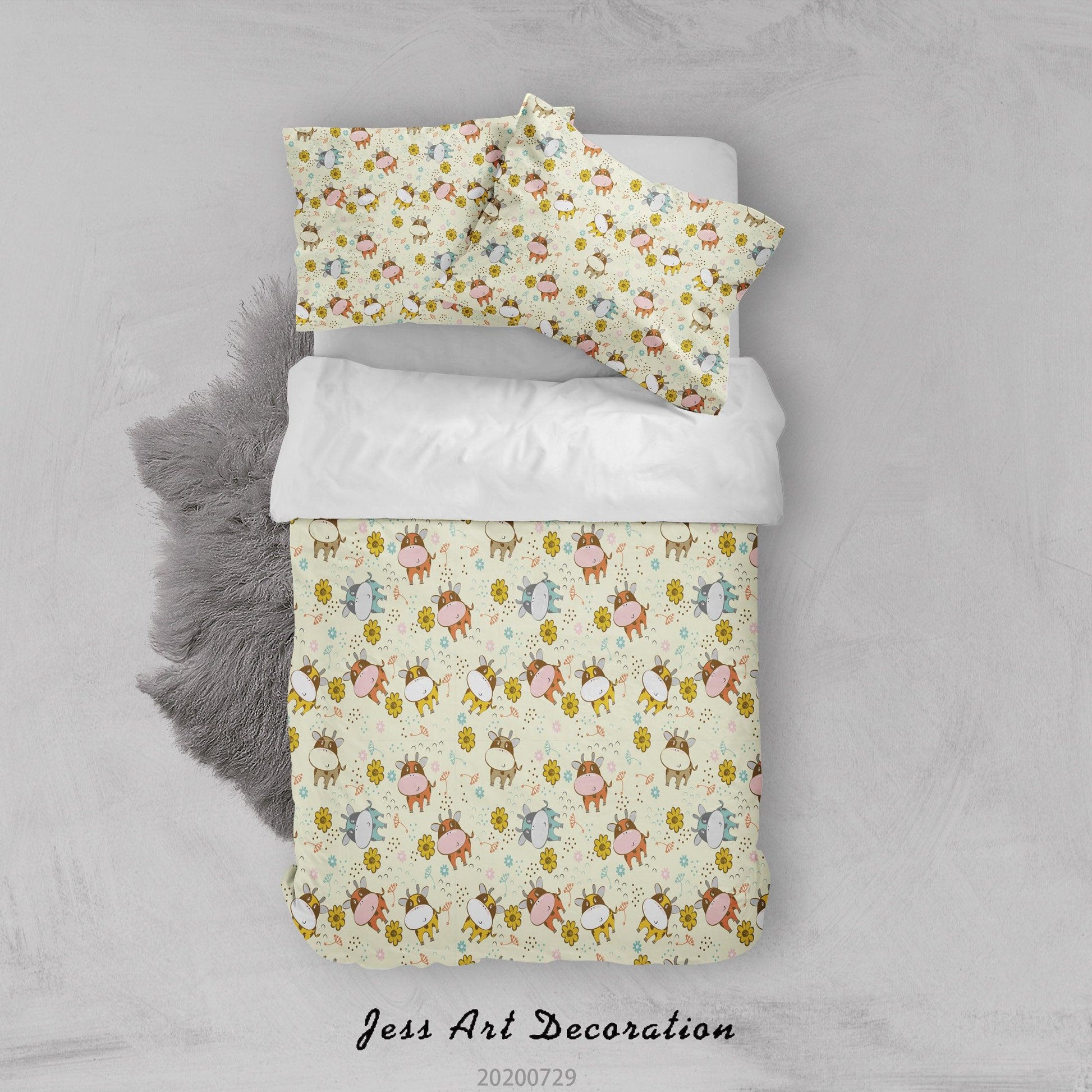 3D Cartoon Floral Cow Quilt Cover Set Bedding Set Duvet Cover Pillowcases LXL 130