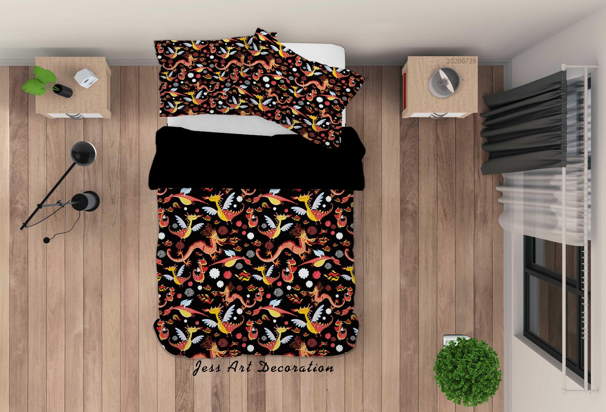 3D Cartoon Floral Dragon Quilt Cover Set Bedding Set Duvet Cover Pillowcases LXL 133