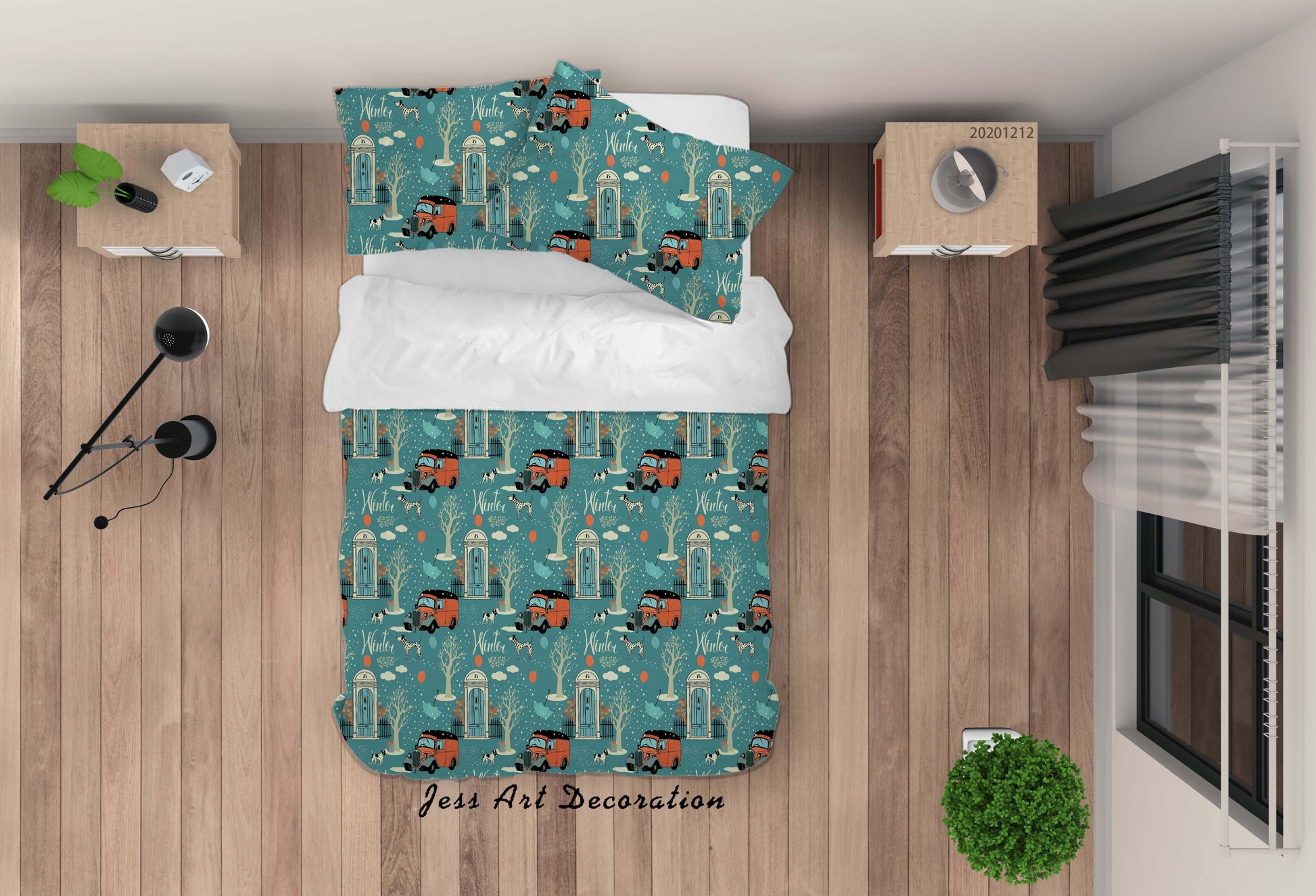 3D Cartoon Four Seasons Set Four Seamless Vehicle Background Quilt Cover Set Bedding Set Duvet Cover Pillowcases LXL