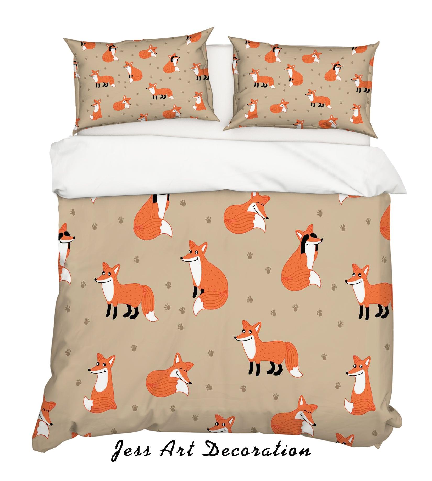 3D Cartoon Fox Brown Quilt Cover Set Bedding Set Pillowcases 36