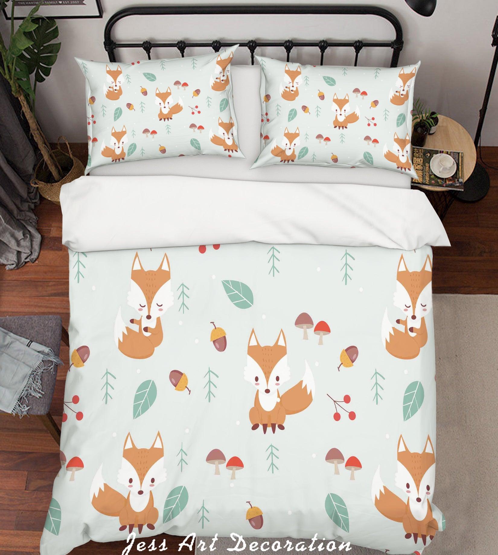 3D Cartoon Fox Leaf Quilt Cover Set Bedding Set Pillowcases 35
