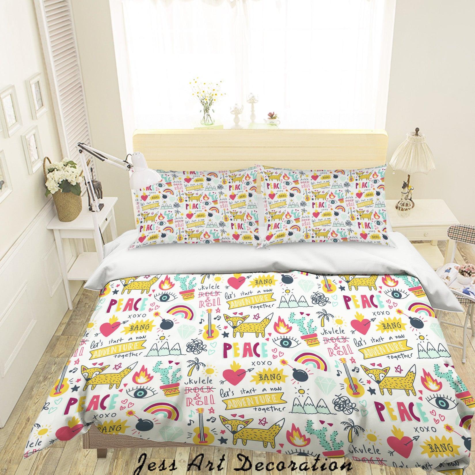 3D Cartoon Fox Rainbow Love Quilt Cover Set Bedding Set Duvet Cover Pillowcases A054 LQH