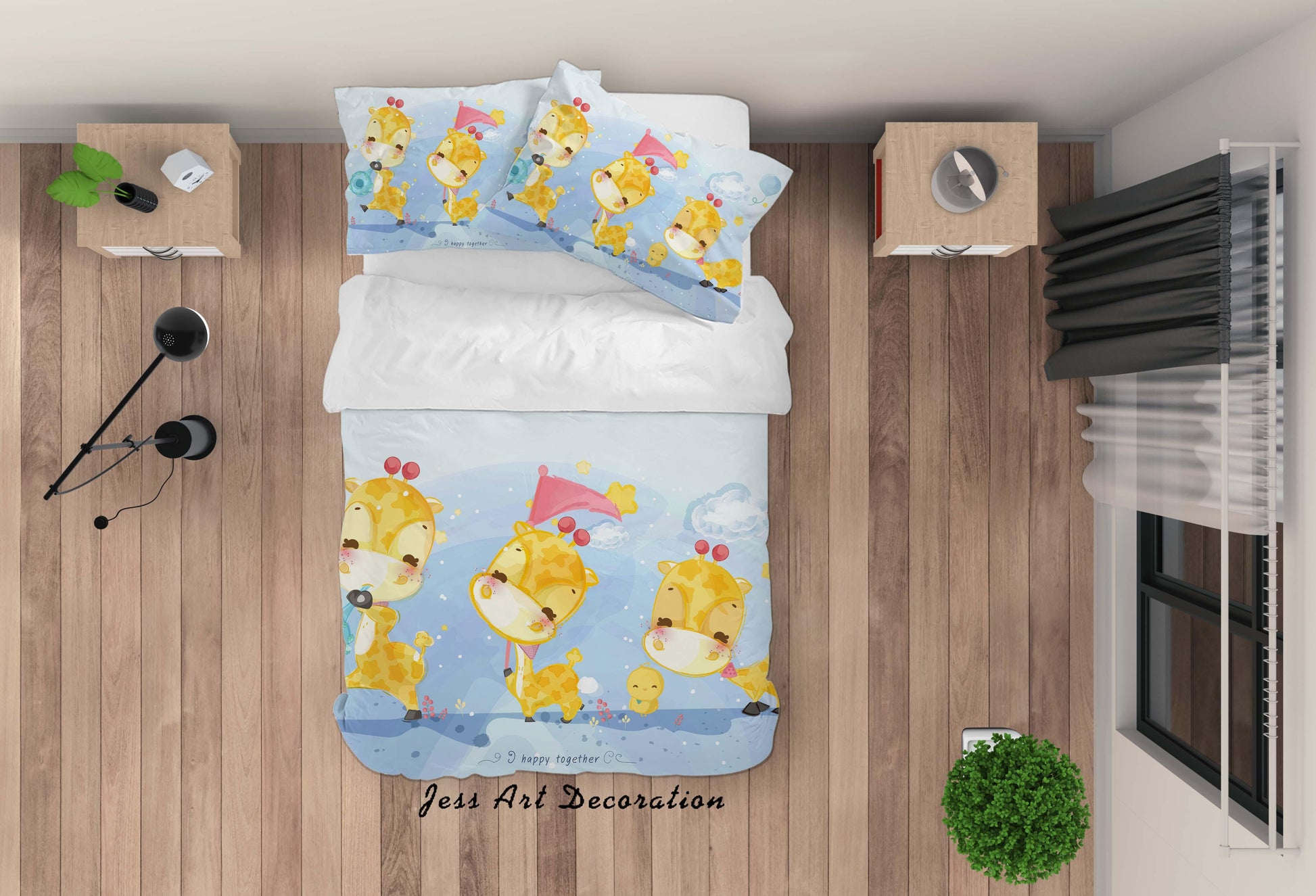 3D Cartoon Giraffe Blue Quilt Cover Set Bedding Set Duvet Cover Pillowcases A336 LQH