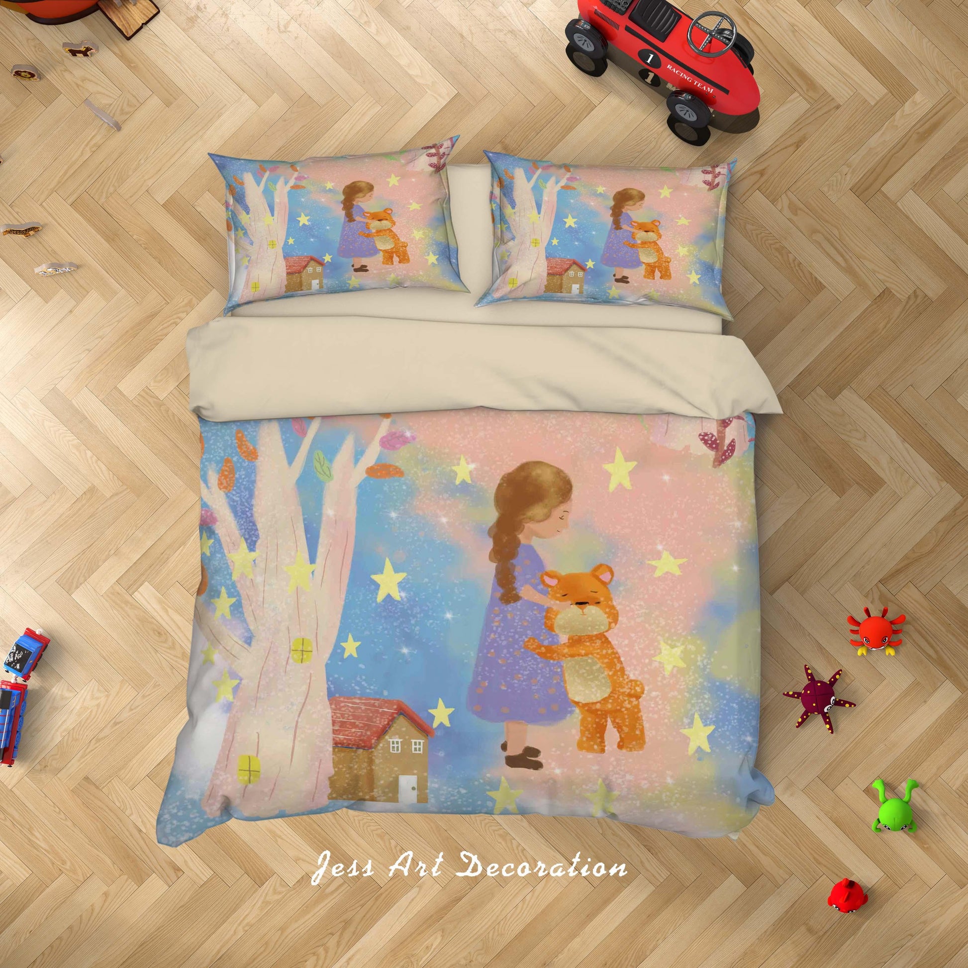 3D Cartoon Girl Bear Tree Quilt Cover Set Bedding Set Duvet Cover Pillowcases A533 LQH