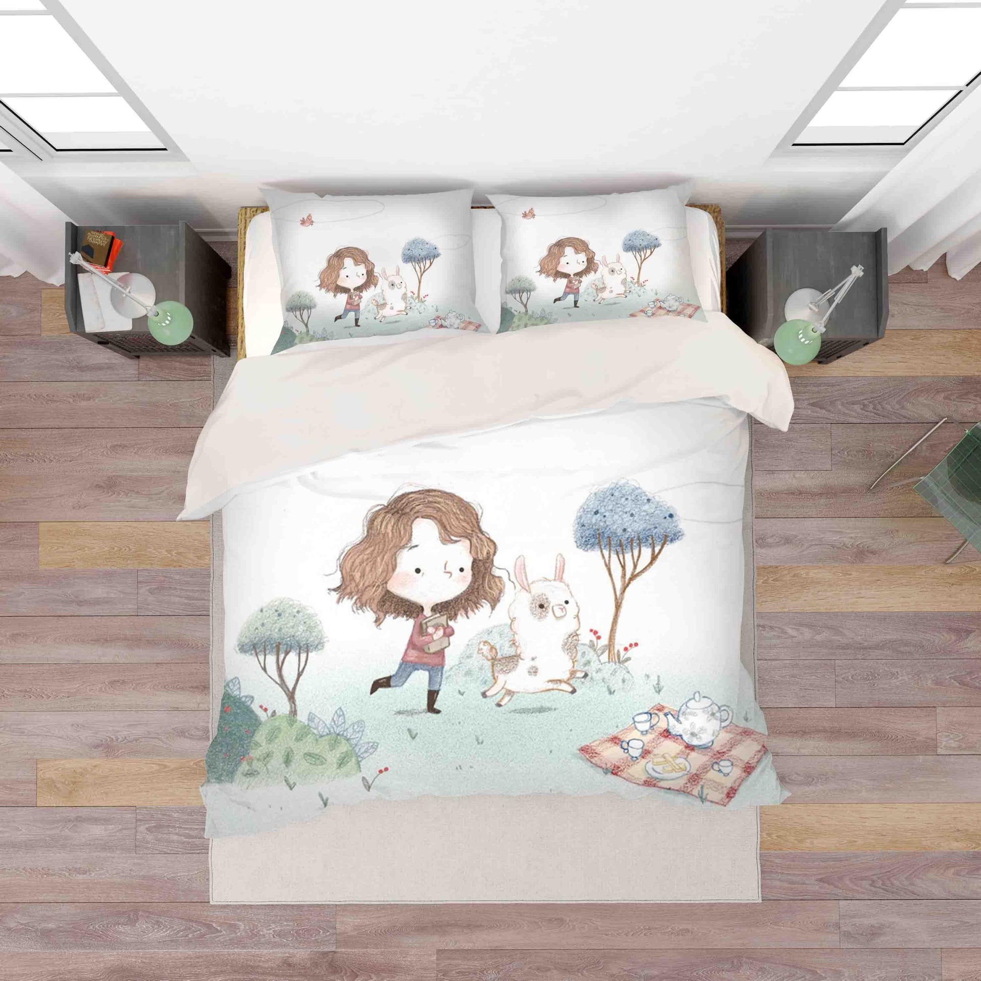 3D Cartoon Girl Sheep Trees Plants Picnic Quilt Cover Set Bedding Set Duvet Cover Pillowcases SF055
