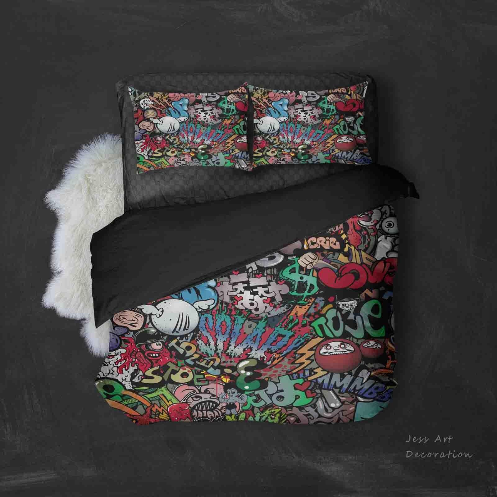 3D Cartoon Graffiti Quilt Cover Set Bedding Set Duvet Cover Pillowcases SF084