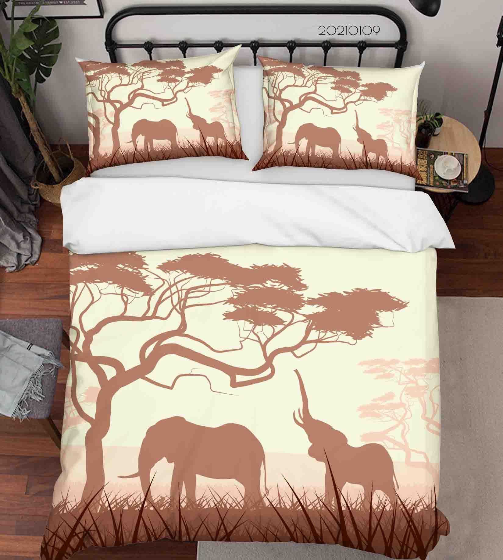 3D Cartoon Green Forest Animal Elephant Quilt Cover Set Bedding Set Duvet Cover Pillowcases 54 LQH