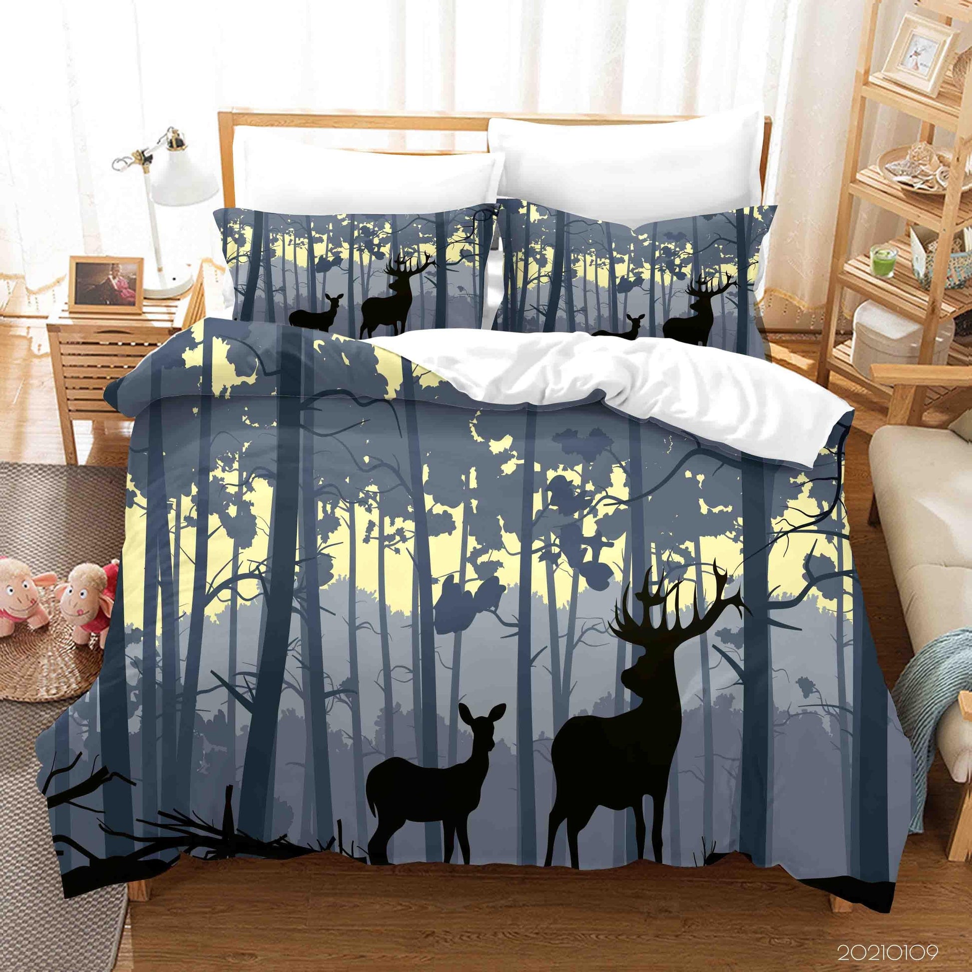 3D Cartoon Green Forest Animal Elk Quilt Cover Set Bedding Set Duvet Cover Pillowcases 49 LQH