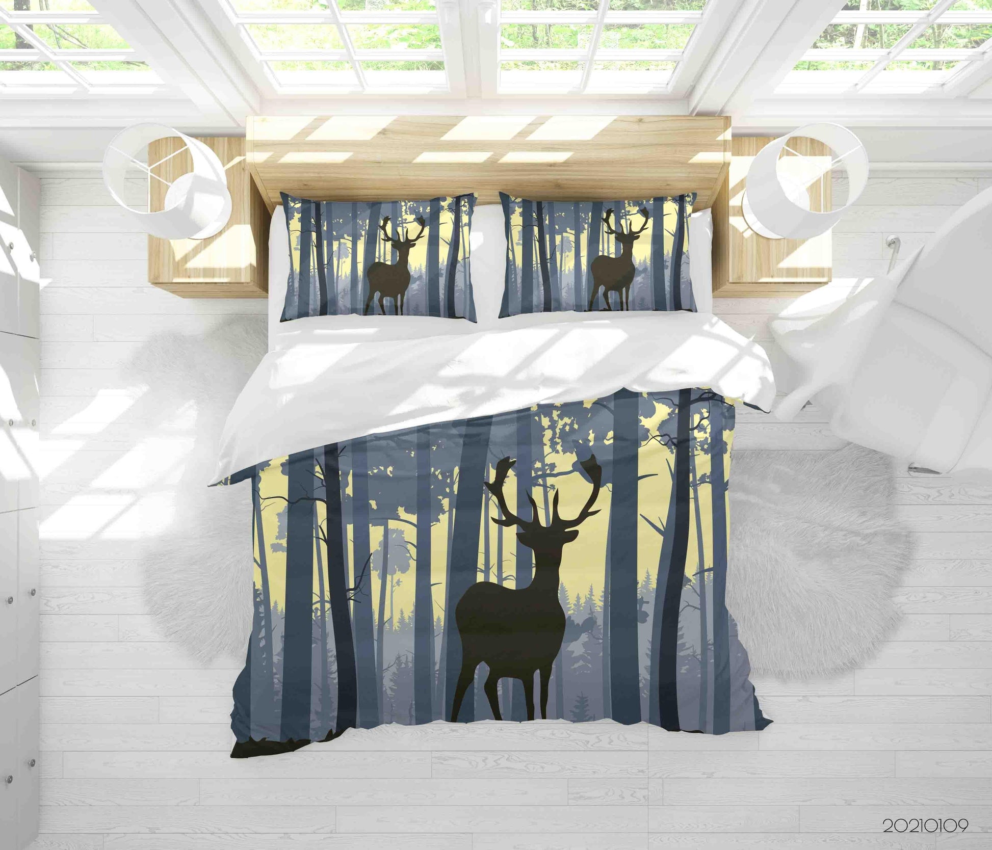 3D Cartoon Green Forest Animal Elk Quilt Cover Set Bedding Set Duvet Cover Pillowcases 50 LQH
