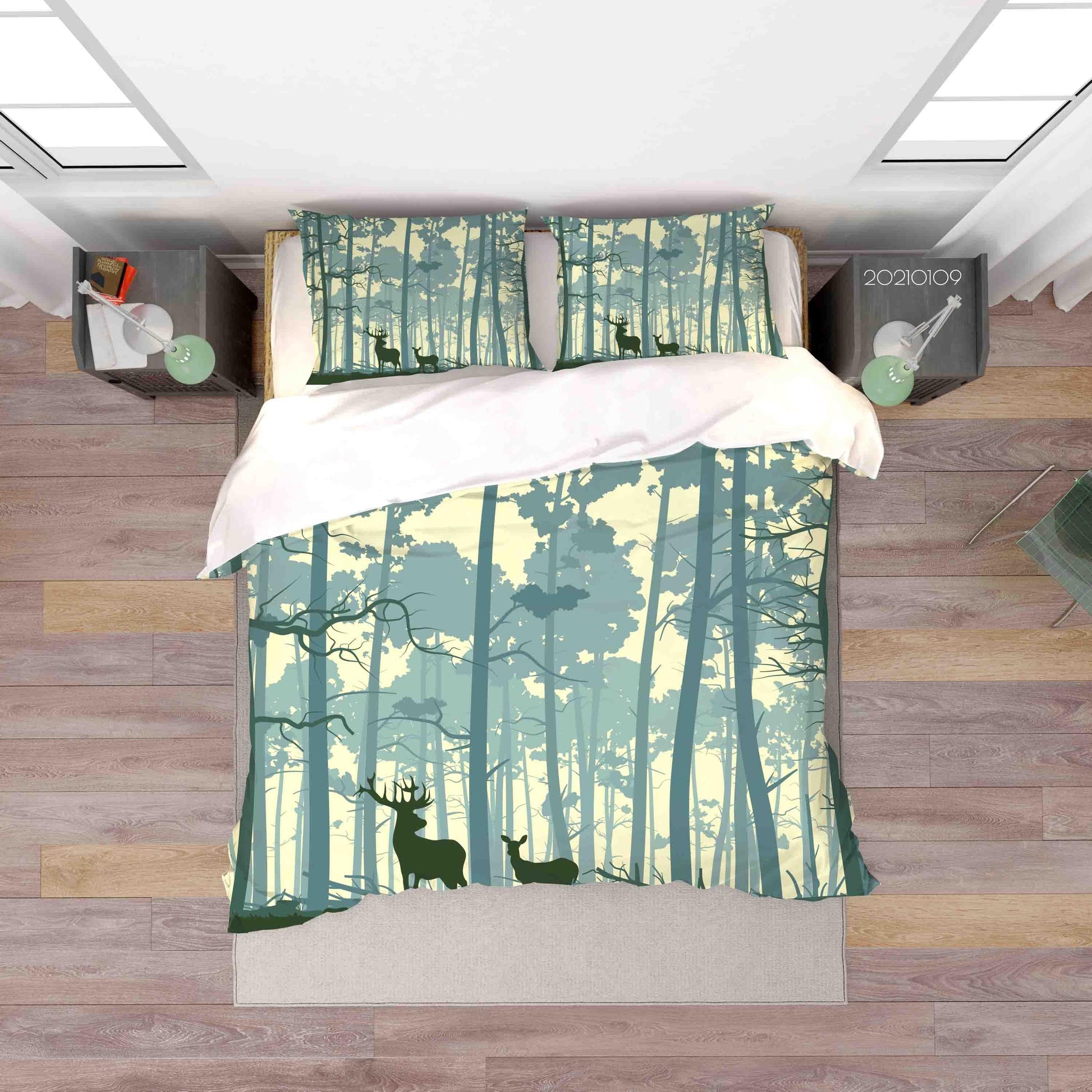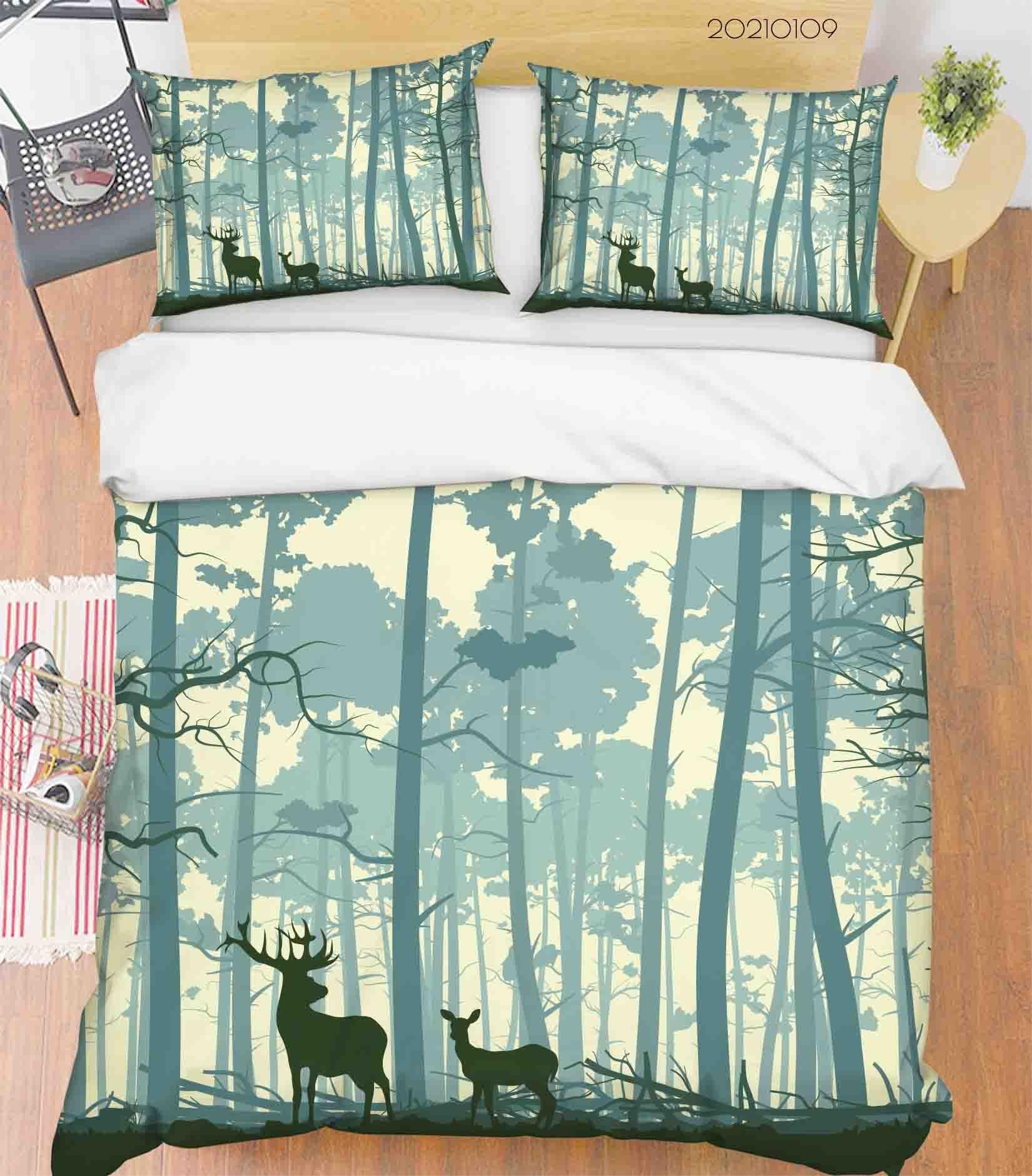 3D Cartoon Green Forest Animal Elk Quilt Cover Set Bedding Set Duvet Cover Pillowcases 53 LQH