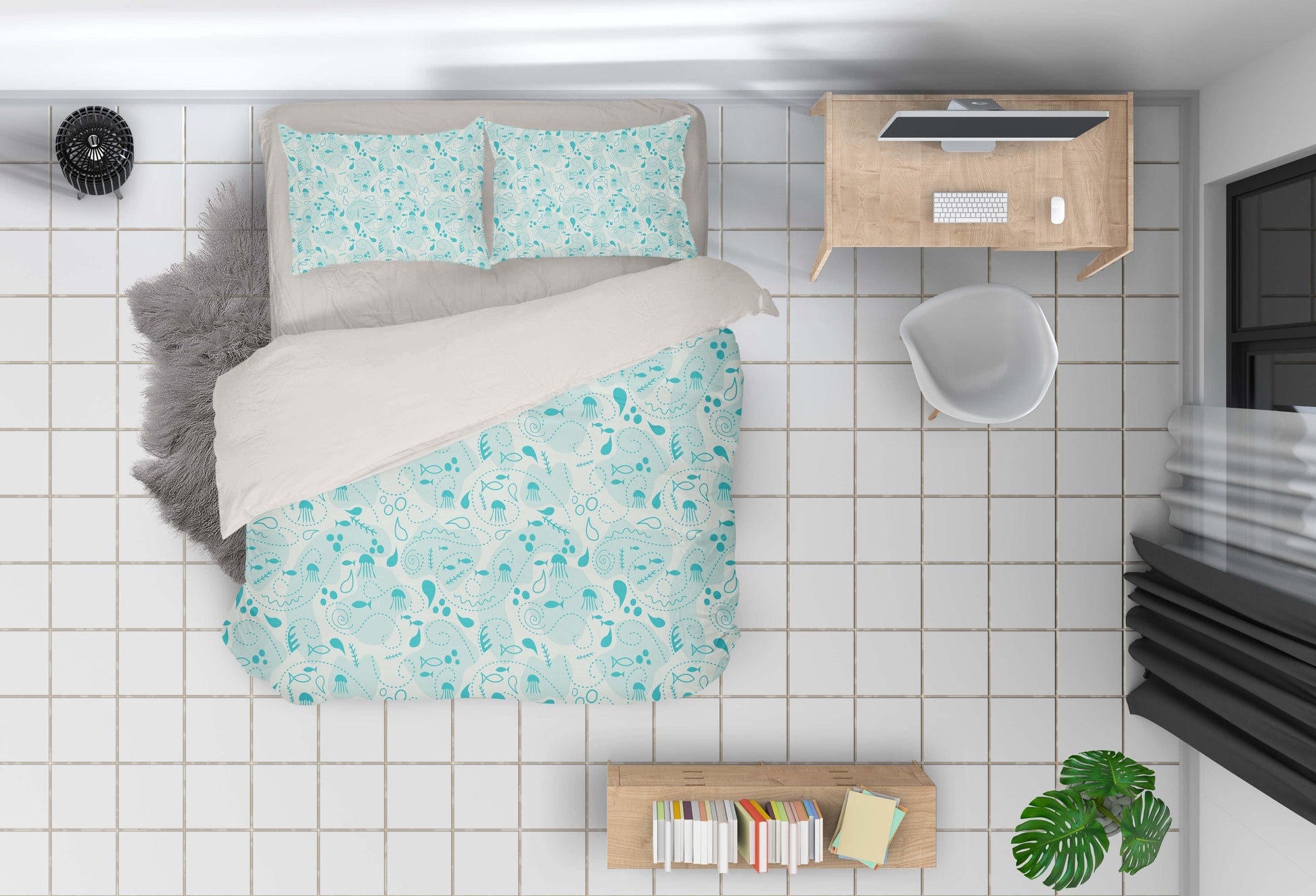 3D Cartoon Green Jellyfish Quilt Cover Set Bedding Set Pillowcases 79