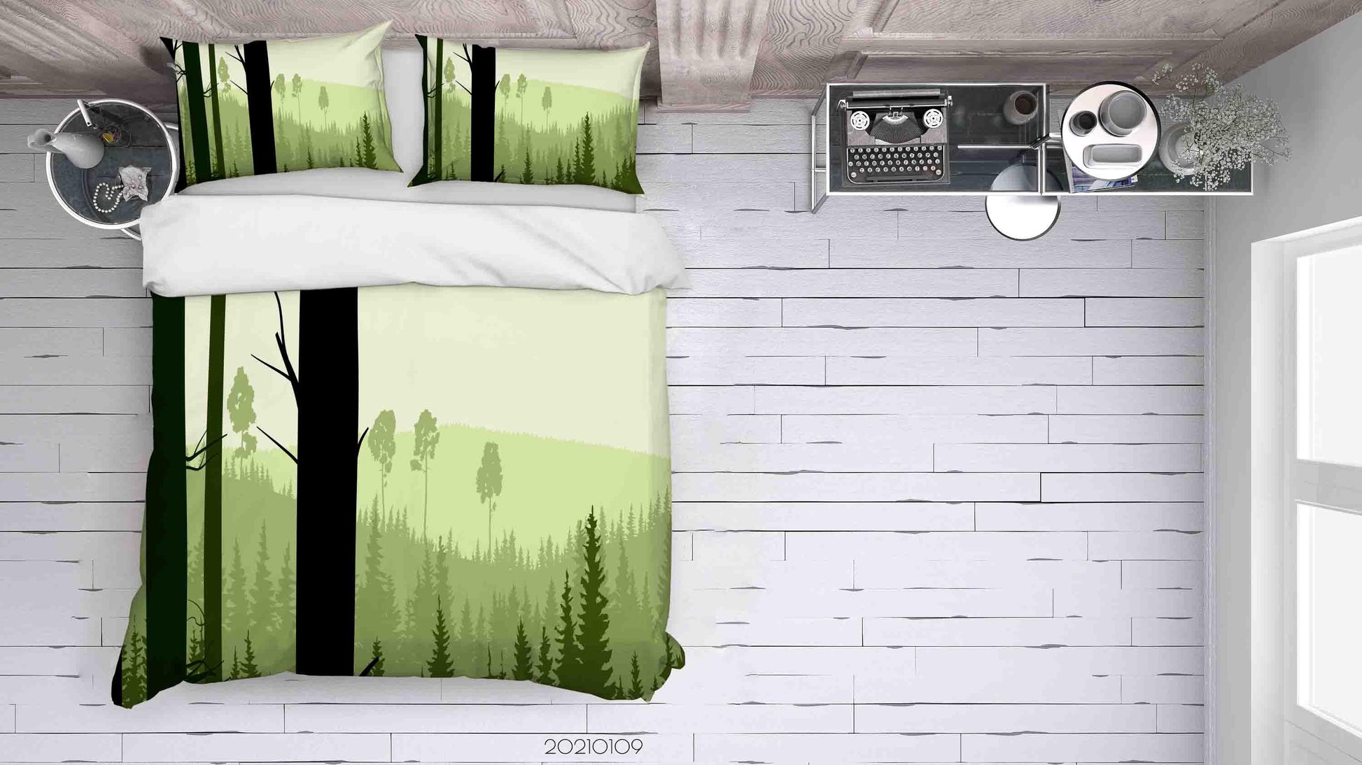3D Cartoon Green Pine Forest Quilt Cover Set Bedding Set Duvet Cover Pillowcases 19 LQH