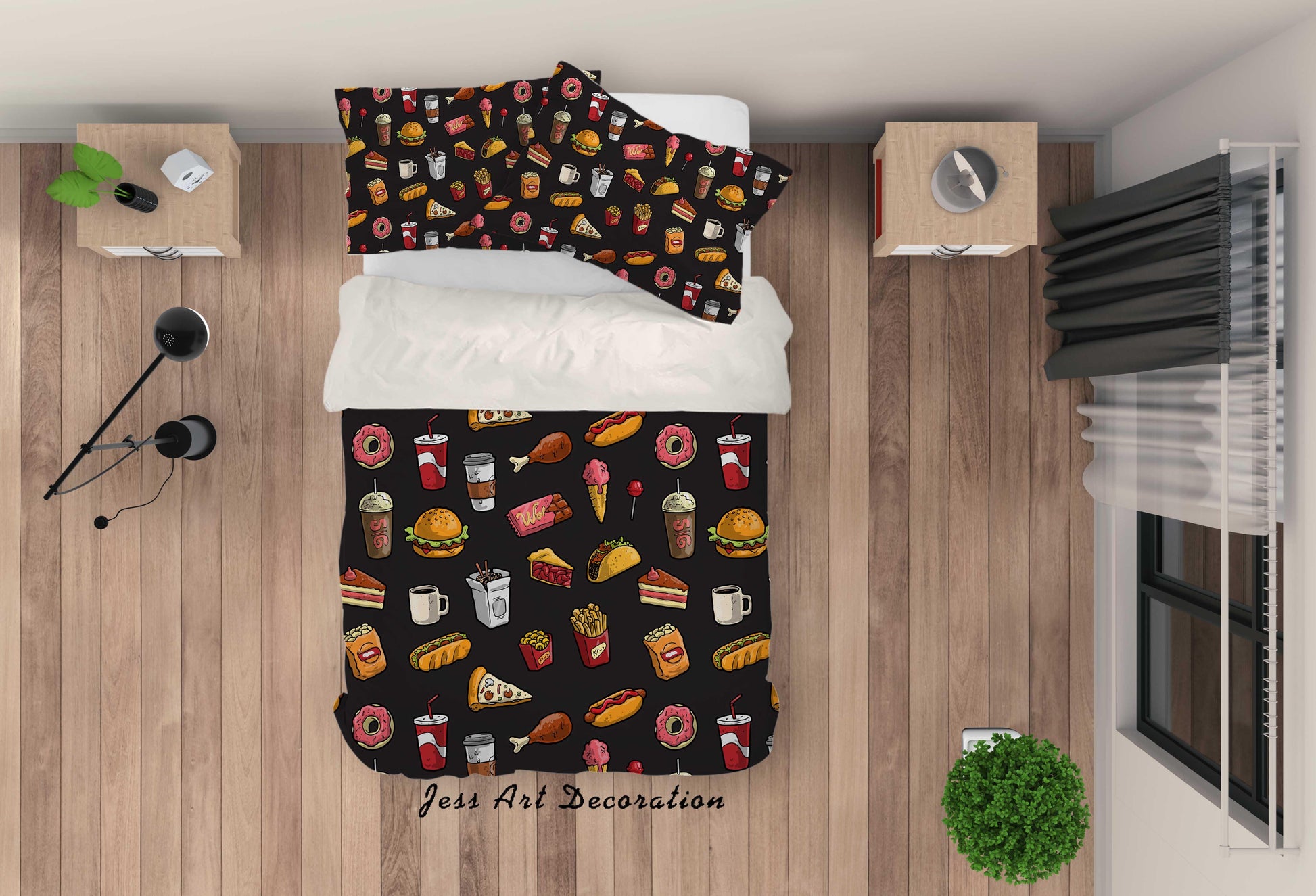 3D Cartoon Hamburger Sandwich Quilt Cover Set Bedding Set Pillowcases 11