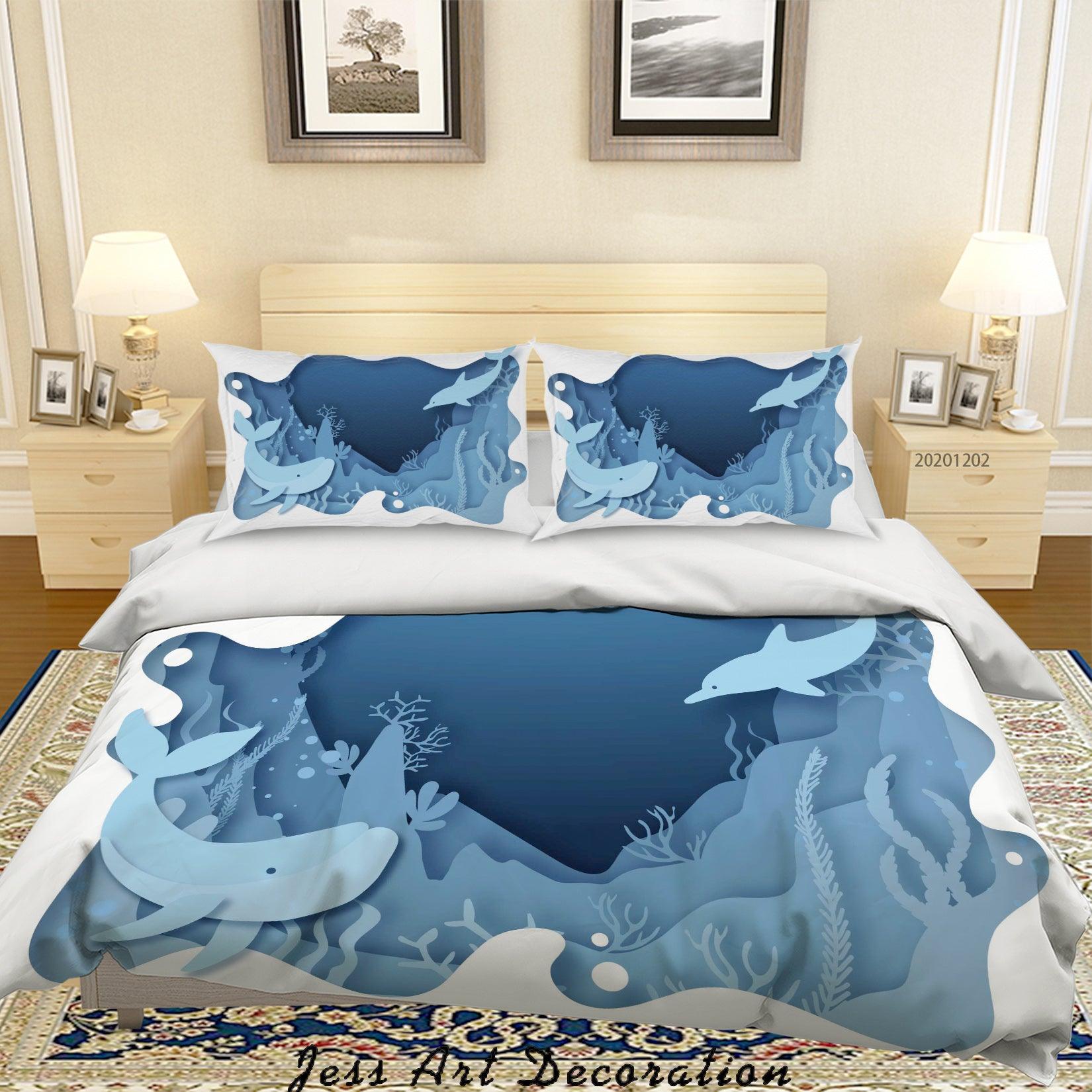 3D Cartoon Hand Drawn Blue Ocean Whale Fish Seaweed Quilt Cover Set Bedding Set Duvet Cover Pillowcases LXL