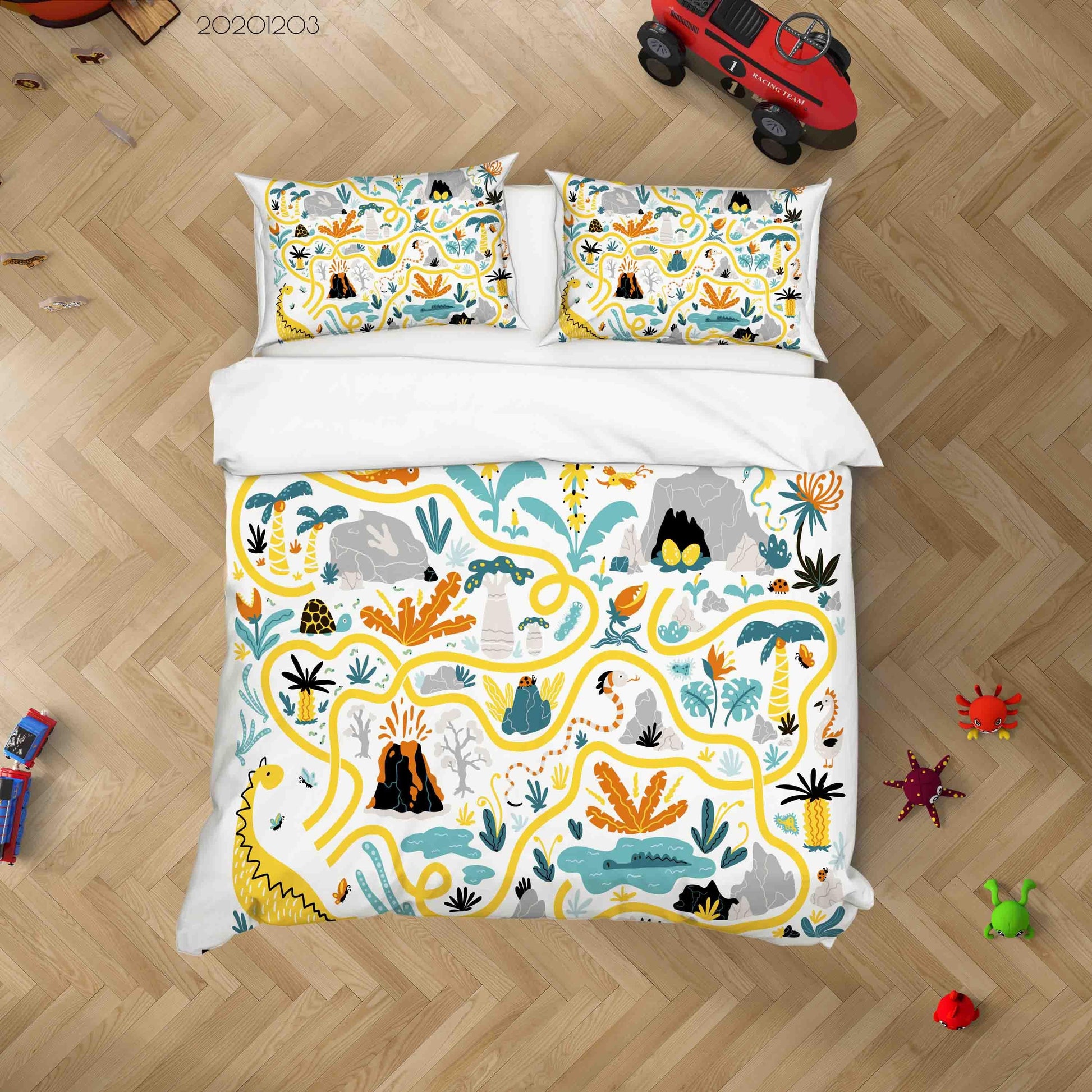 3D Cartoon Hand Drawn Colorful Dinosaur Plant Illustration Animal Quilt Cover Set Bedding Set Duvet Cover Pillowcases LXL
