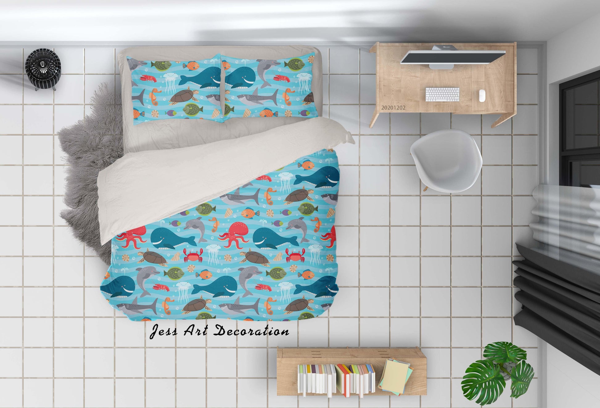 3D Cartoon Hand Drawn Colorful Ocean Shark Whale Crab Fish Quilt Cover Set Bedding Set Duvet Cover Pillowcases LXL